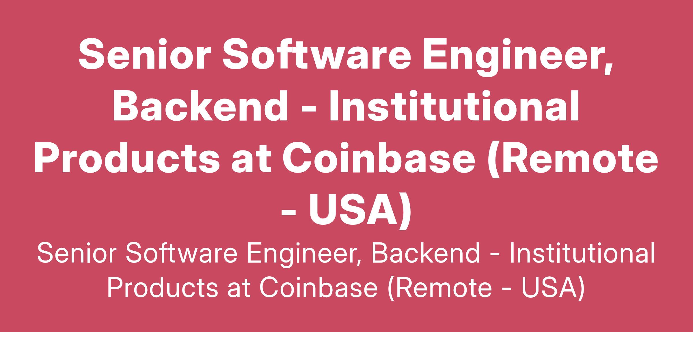 Senior Software Engineer, Backend - Institutional Products at Coinbase (Remote - USA)