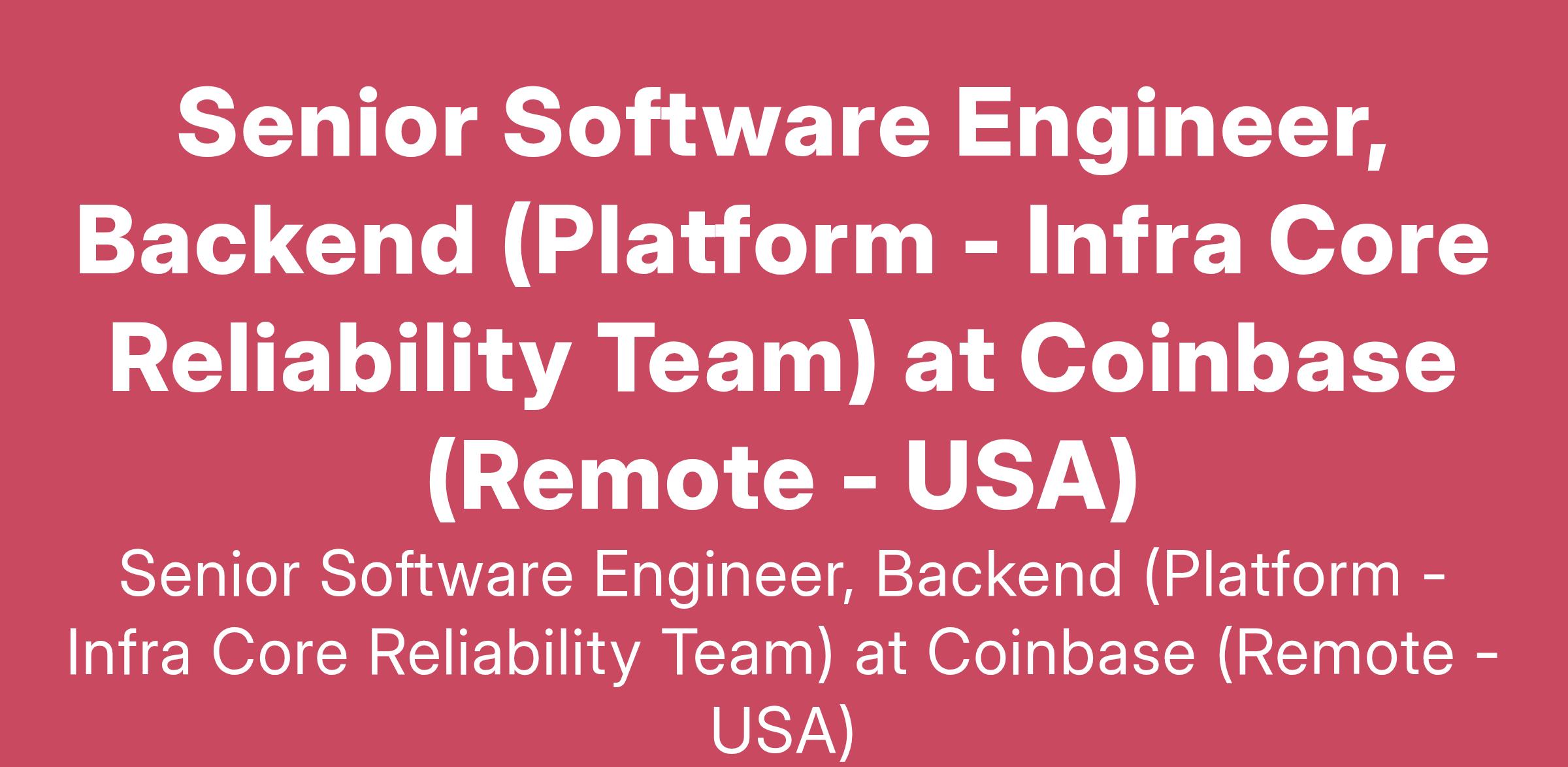 Senior Software Engineer, Backend (Platform - Infra Core Reliability Team) at Coinbase (Remote - USA)