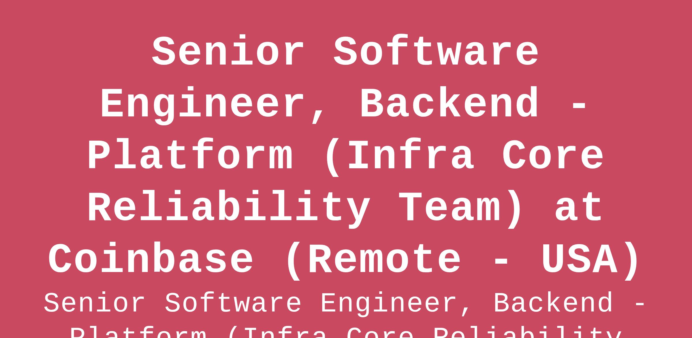 Senior Software Engineer, Backend - Platform (Infra Core Reliability Team) at Coinbase (Remote - USA)