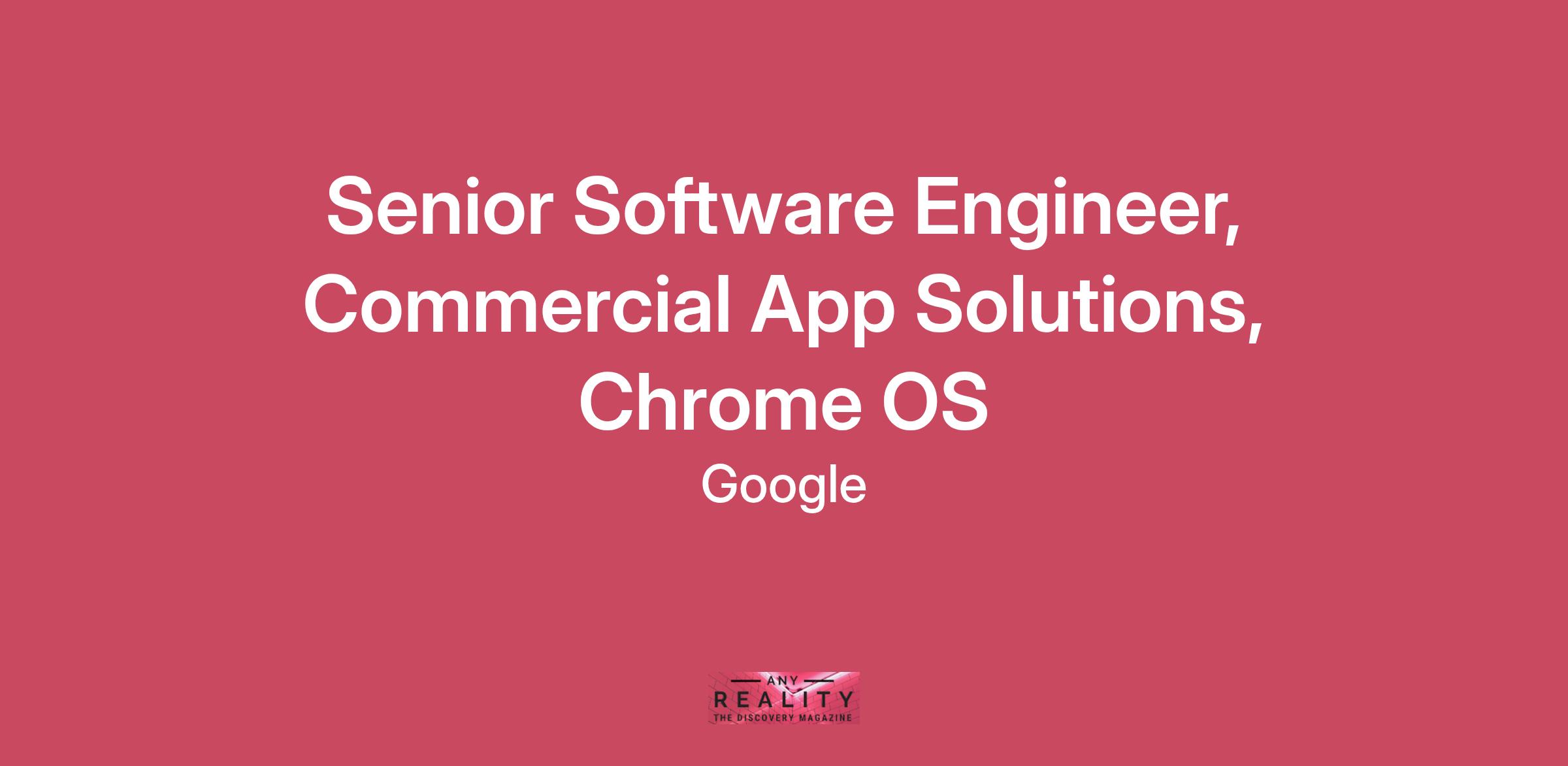 With your technical expertise you will manage project priorities, deadlines, and deliverables. You will design, develop, test, deploy, maintain, and enhance software solutions.ChromeOS delivers quality computing at scale to provide universal and unfettered access to information, entertainment, and tools. Our mission is to empower anyone to create and access information freely through fast, secure, simple, and intelligent computing.Responsibilities