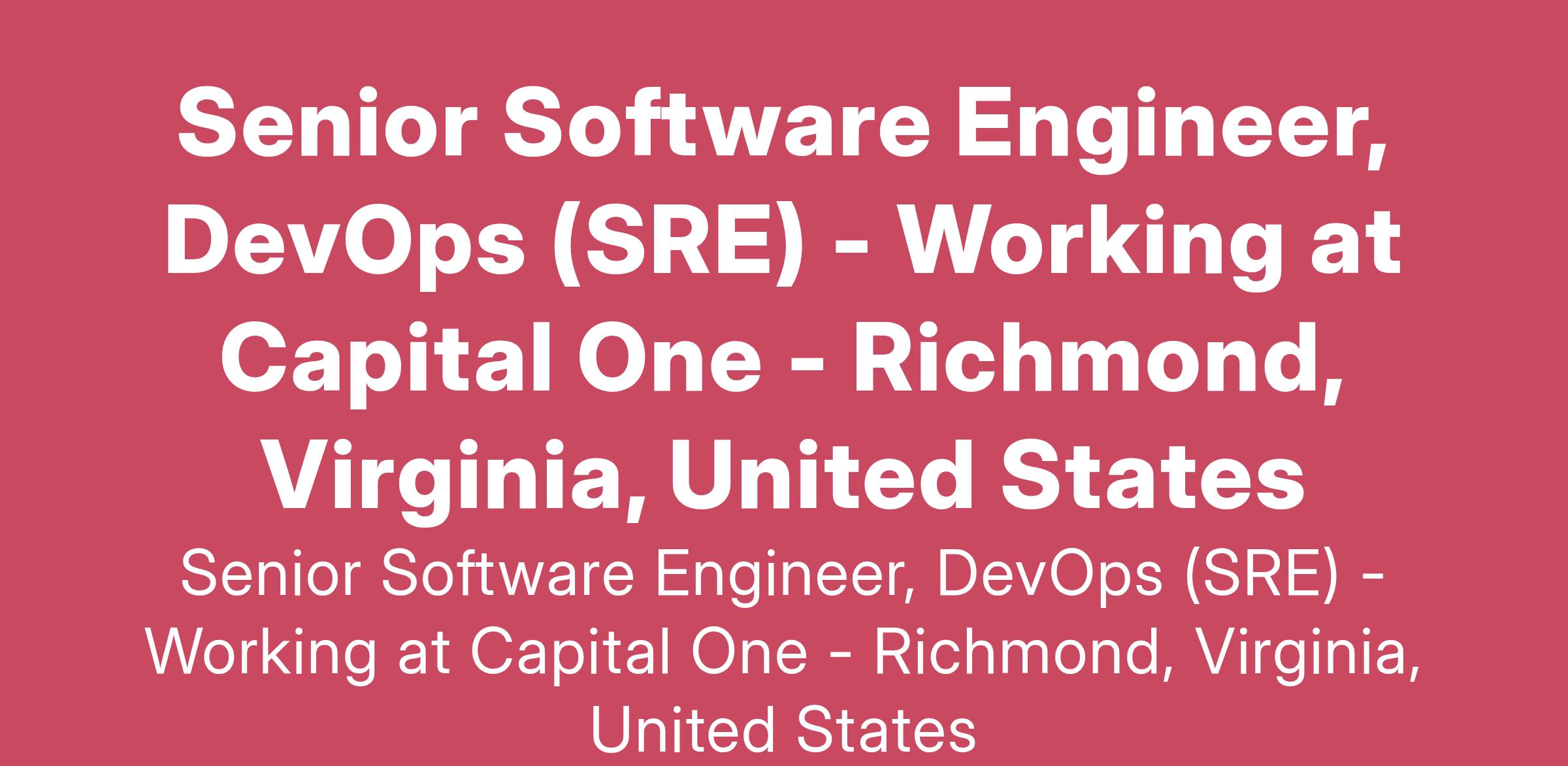 Do you love building and pioneering in the technology space? Do you enjoy solving complex business problems in a fast-paced, collaborative, inclusive, and iterative delivery environment? At Capital One, you'll be part of a big group of makers, breakers, doers and disruptors, who love to solve real problems and meet real customer needs. We are seeking DevOps Engineers experienced with SRE who are passionate about marrying data with emerging technologies to join our team. As a DevOps Engineer, you’ll have the opportunity to be on the forefront of driving a major transformation within Capital One.