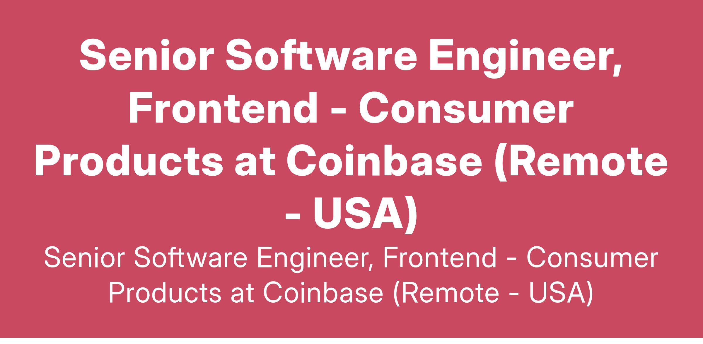 Senior Software Engineer, Frontend - Consumer Products at Coinbase (Remote - USA)