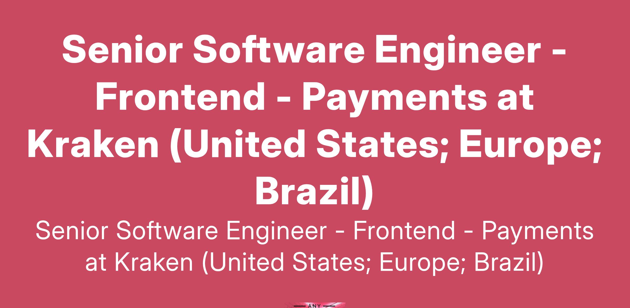 Senior Software Engineer - Frontend - Payments at Kraken (United States; Europe; Brazil)