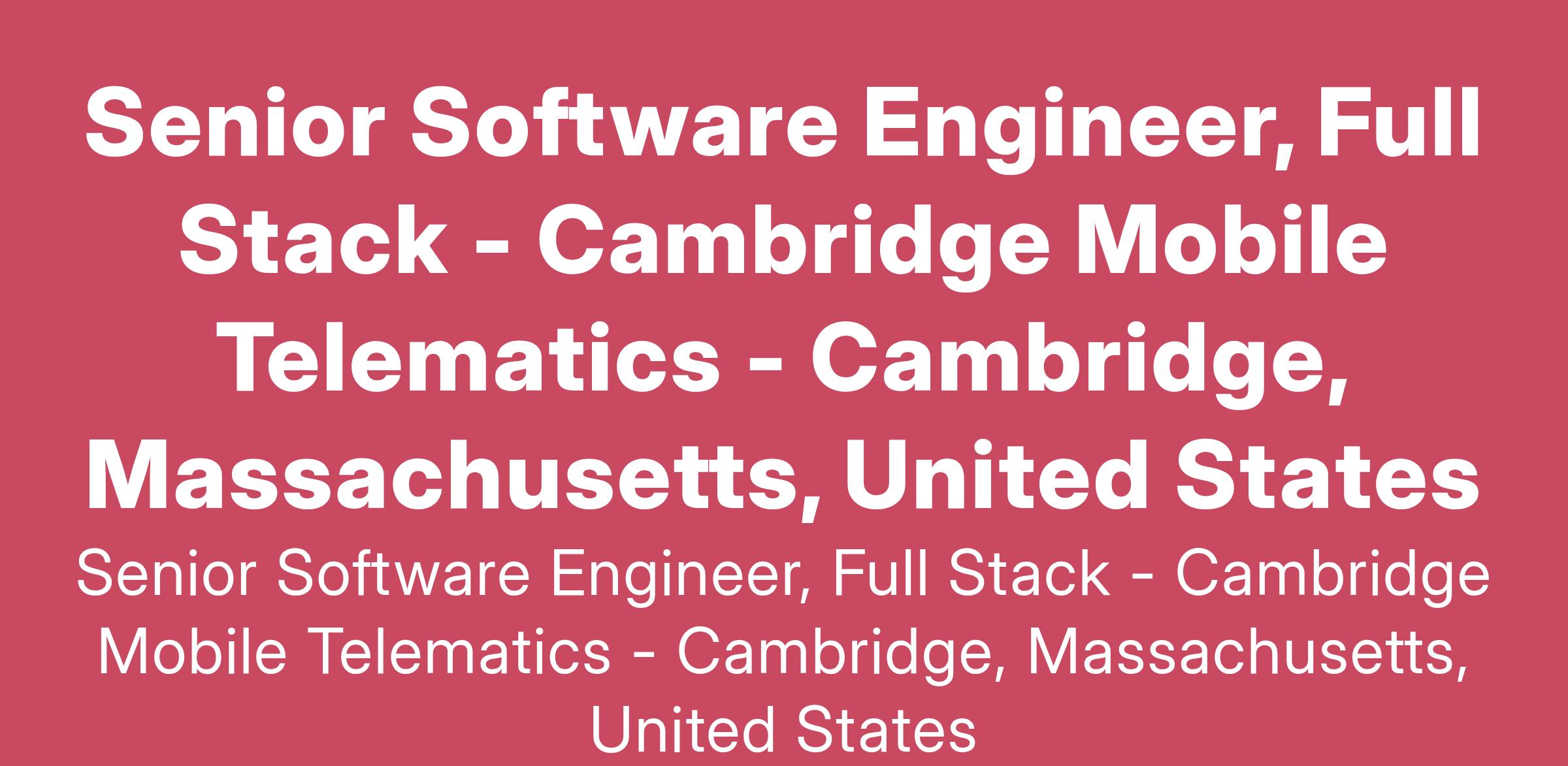 We do not discriminate based on race, religion, color, national origin, gender, sexual orientation, age, marital status, veteran status or disability state. “CMT is headquartered in Cambridge, MA. “To learn more, visit www.cmtelematics.com and follow us on X @cmtelematics.”