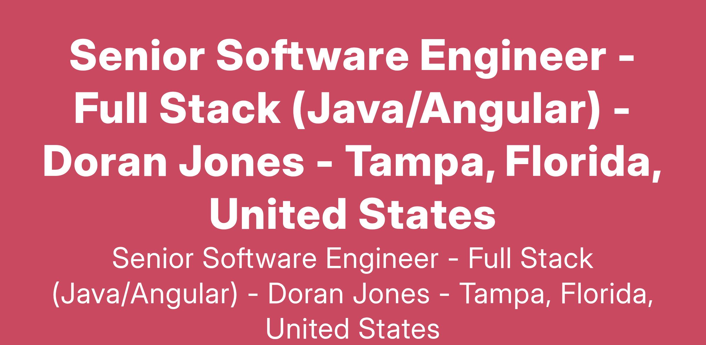 Doran Jones is looking for a Senior Software Engineer to leverage their engineering experience in a solutions-focused Agile environment.