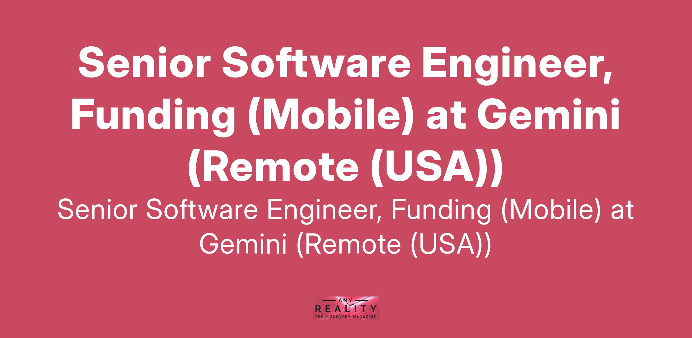 Senior Software Engineer, Funding (Mobile) at Gemini (Remote (USA))