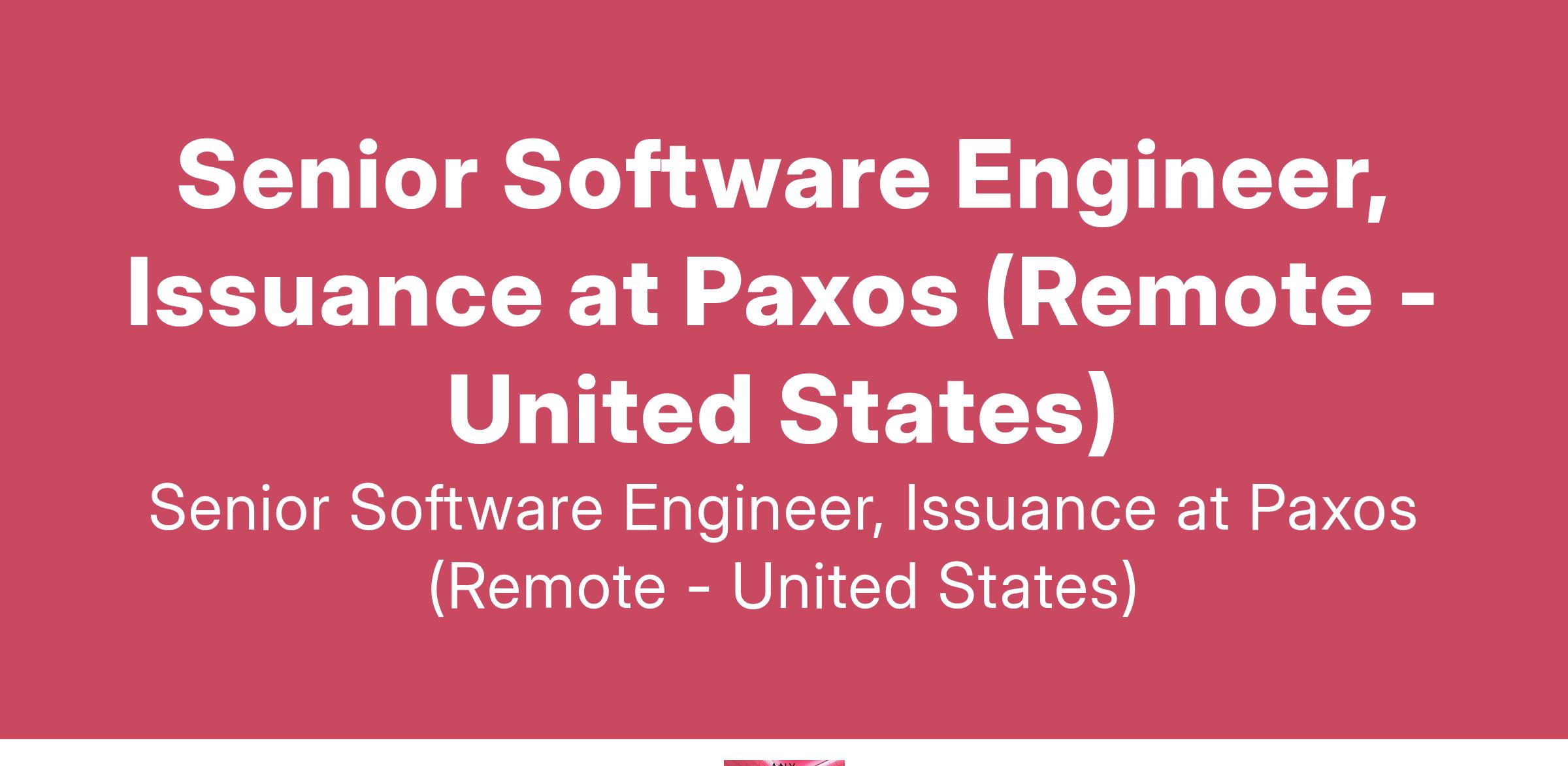 Senior Software Engineer, Issuance at Paxos (Remote - United States)