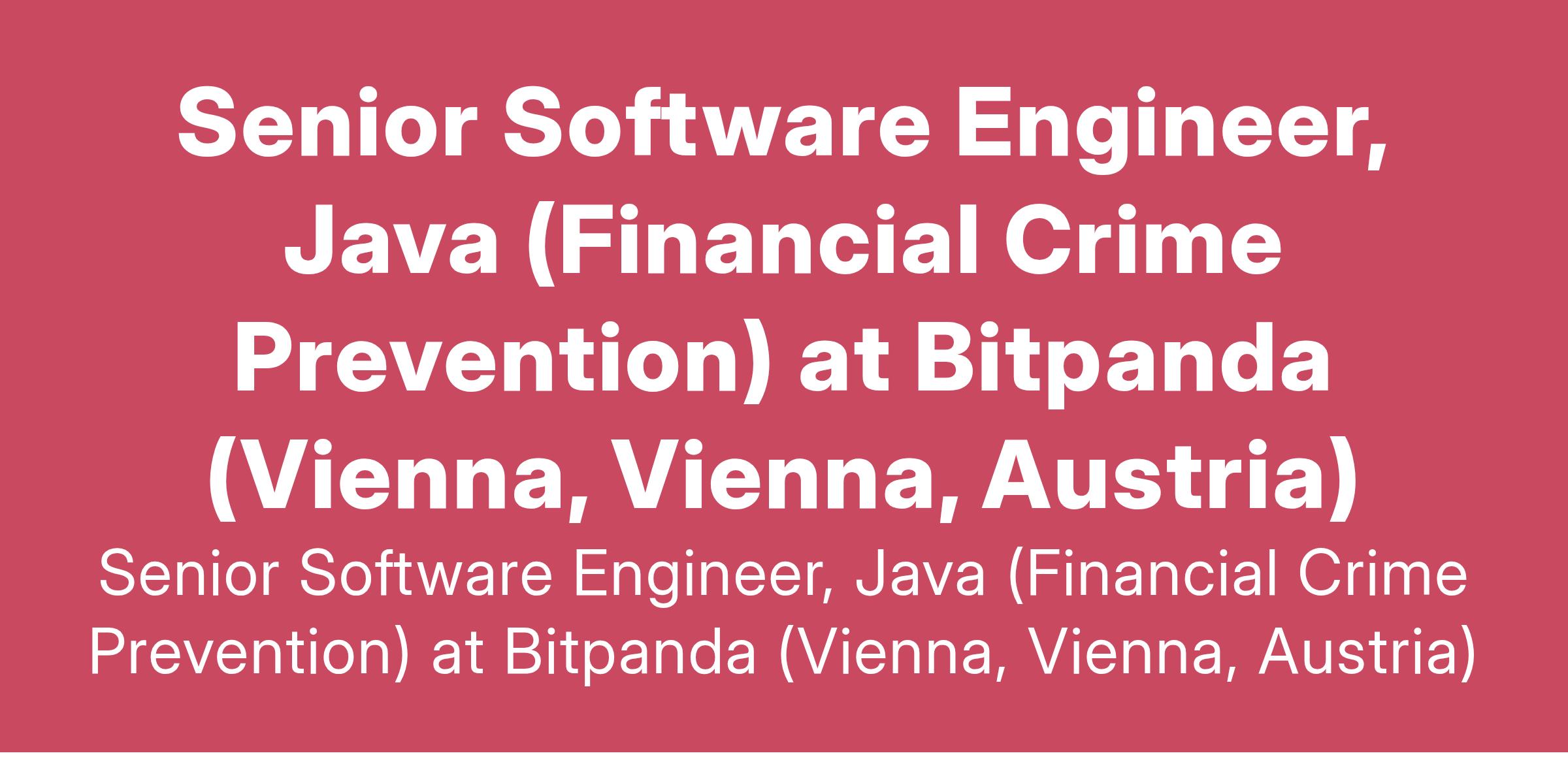 Senior Software Engineer, Java (Financial Crime Prevention) at Bitpanda (Vienna, Vienna, Austria)