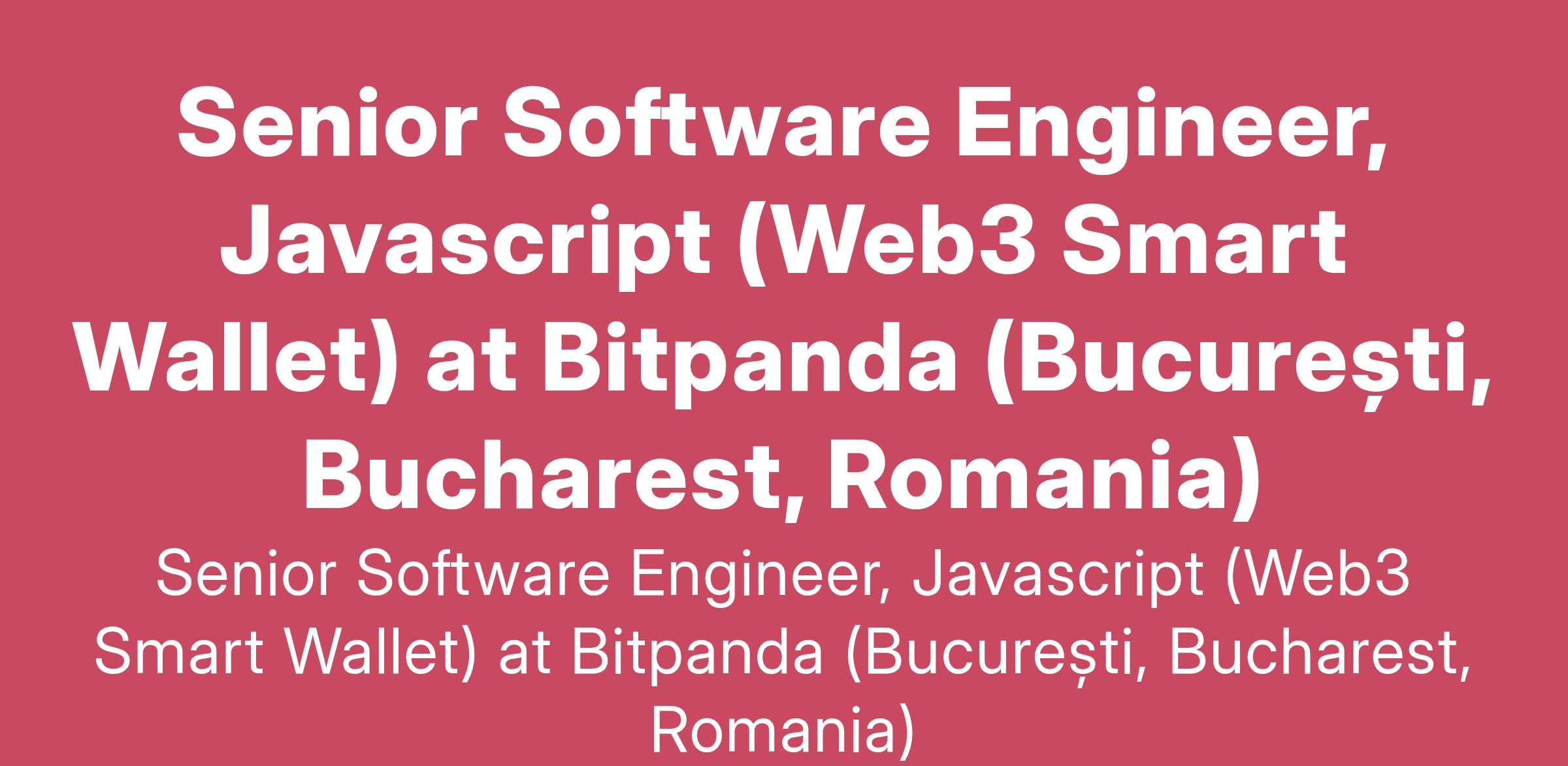 Senior Software Engineer, Javascript (Web3 Smart Wallet) at Bitpanda (București, Bucharest, Romania)