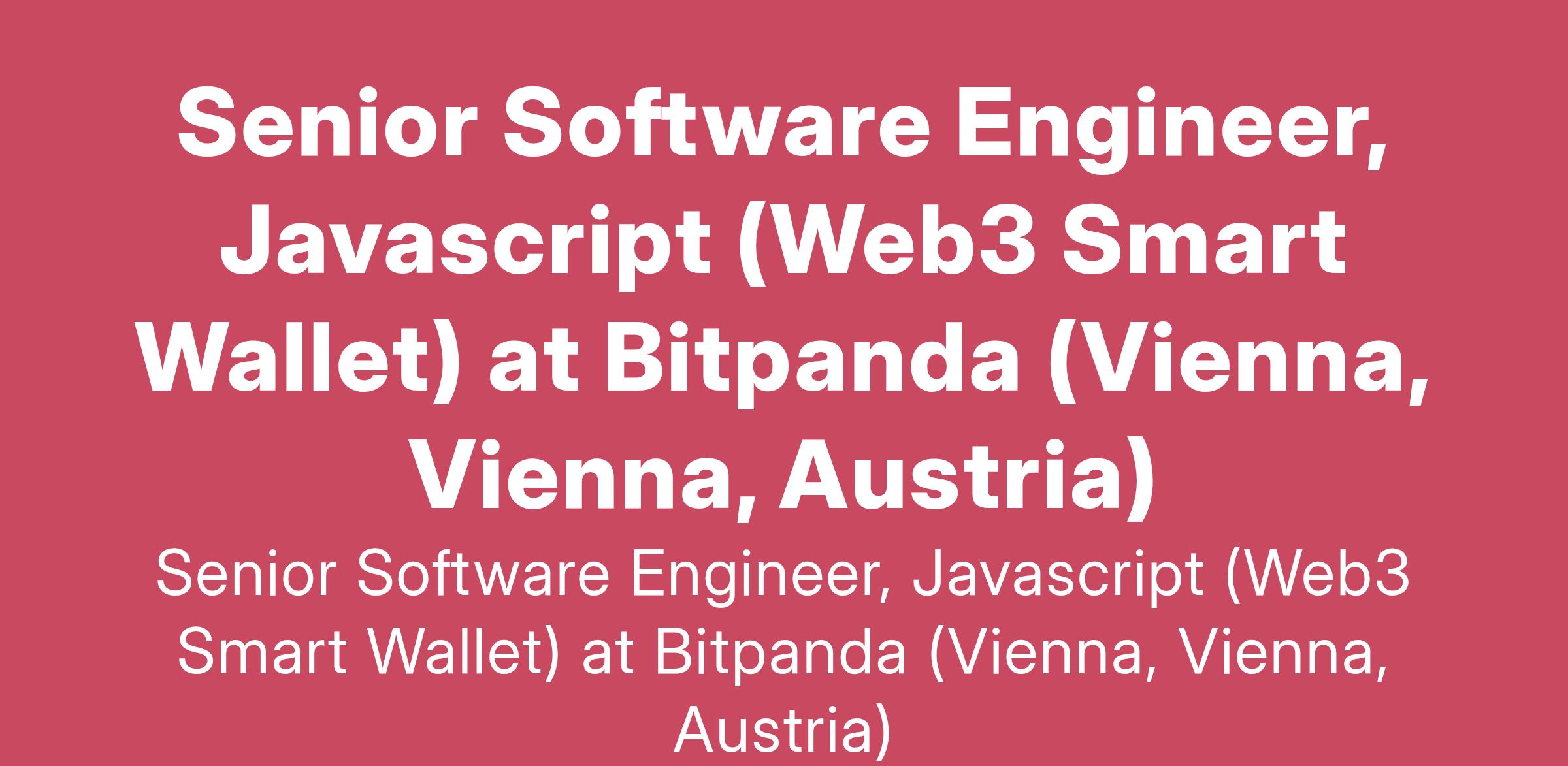 Senior Software Engineer, Javascript (Web3 Smart Wallet) at Bitpanda (Vienna, Vienna, Austria)
