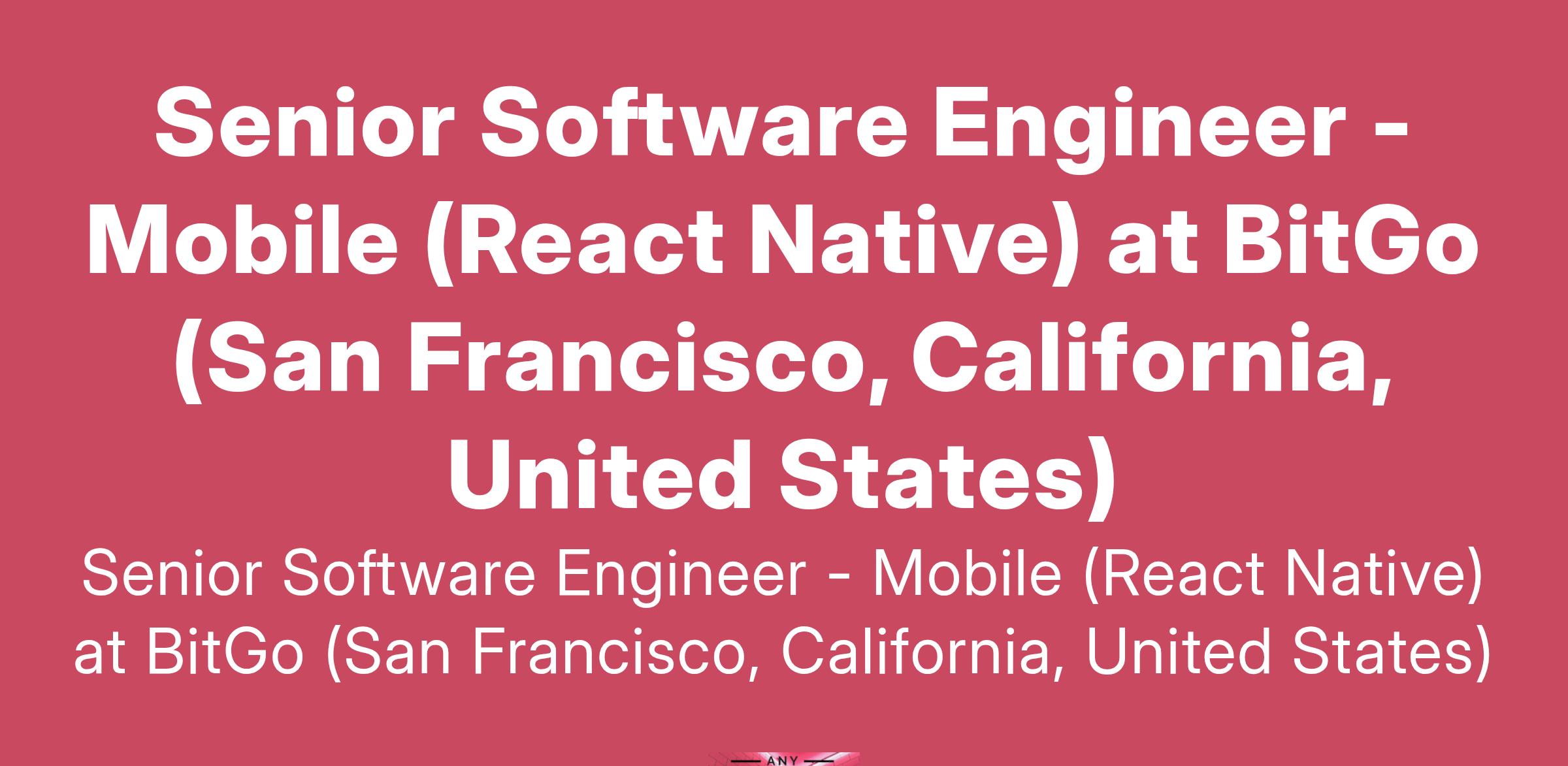 Senior Software Engineer - Mobile (React Native) at BitGo (San Francisco, California, United States)