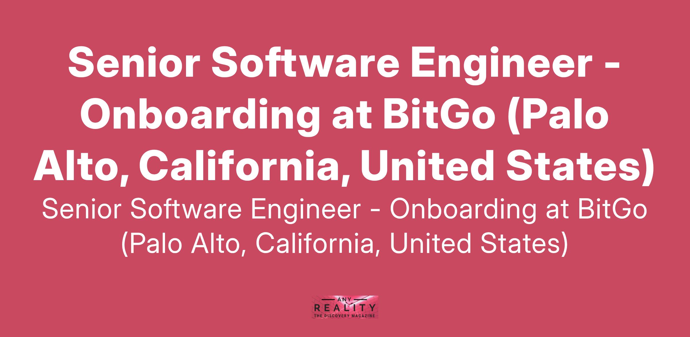 Senior Software Engineer - Onboarding at BitGo (Palo Alto, California, United States)