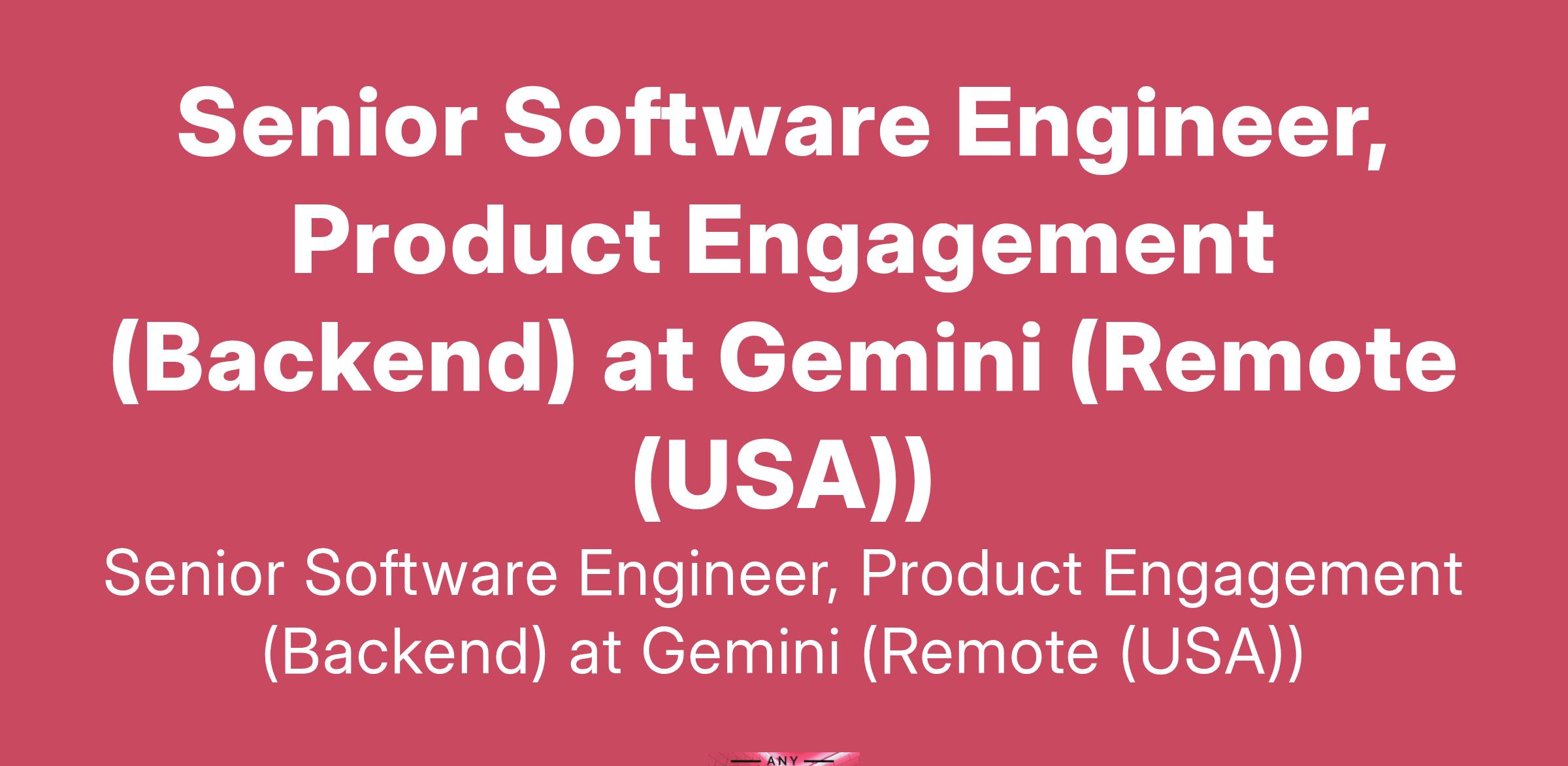 Senior Software Engineer, Product Engagement (Backend) at Gemini (Remote (USA))