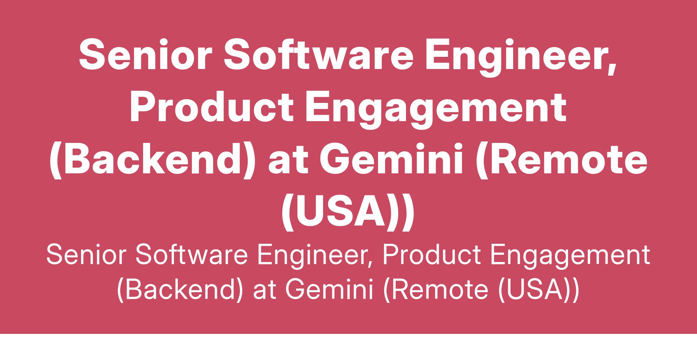 Senior Software Engineer, Product Engagement (Backend) at Gemini (Remote (USA))