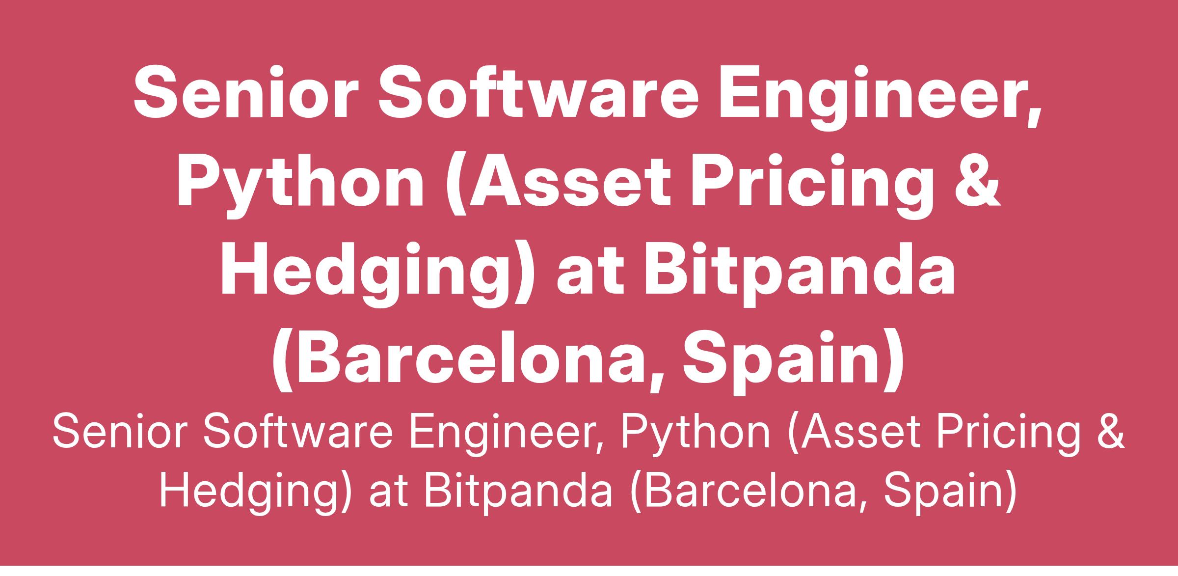 Senior Software Engineer, Python (Asset Pricing & Hedging) at Bitpanda (Barcelona, Spain)