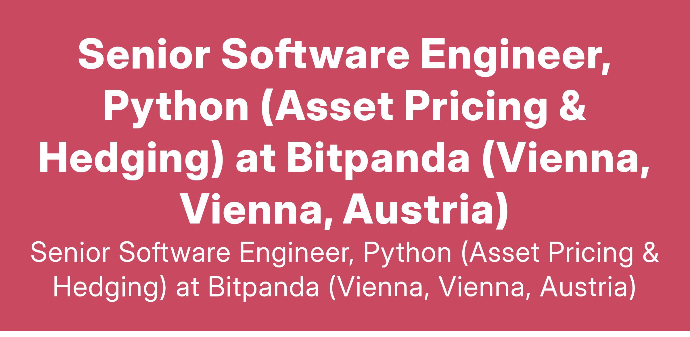 Senior Software Engineer, Python (Asset Pricing & Hedging) at Bitpanda (Vienna, Vienna, Austria)