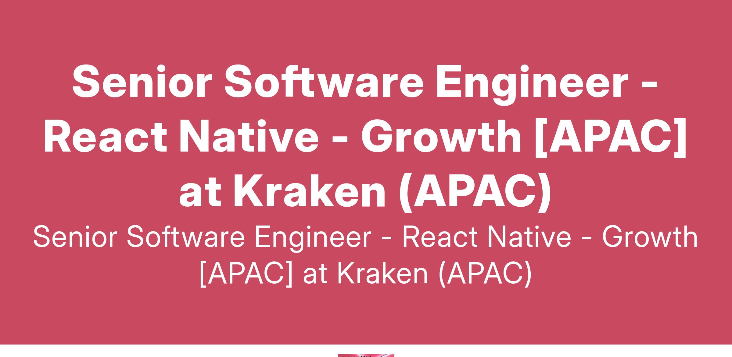Senior Software Engineer - React Native - Growth [APAC] at Kraken (APAC)