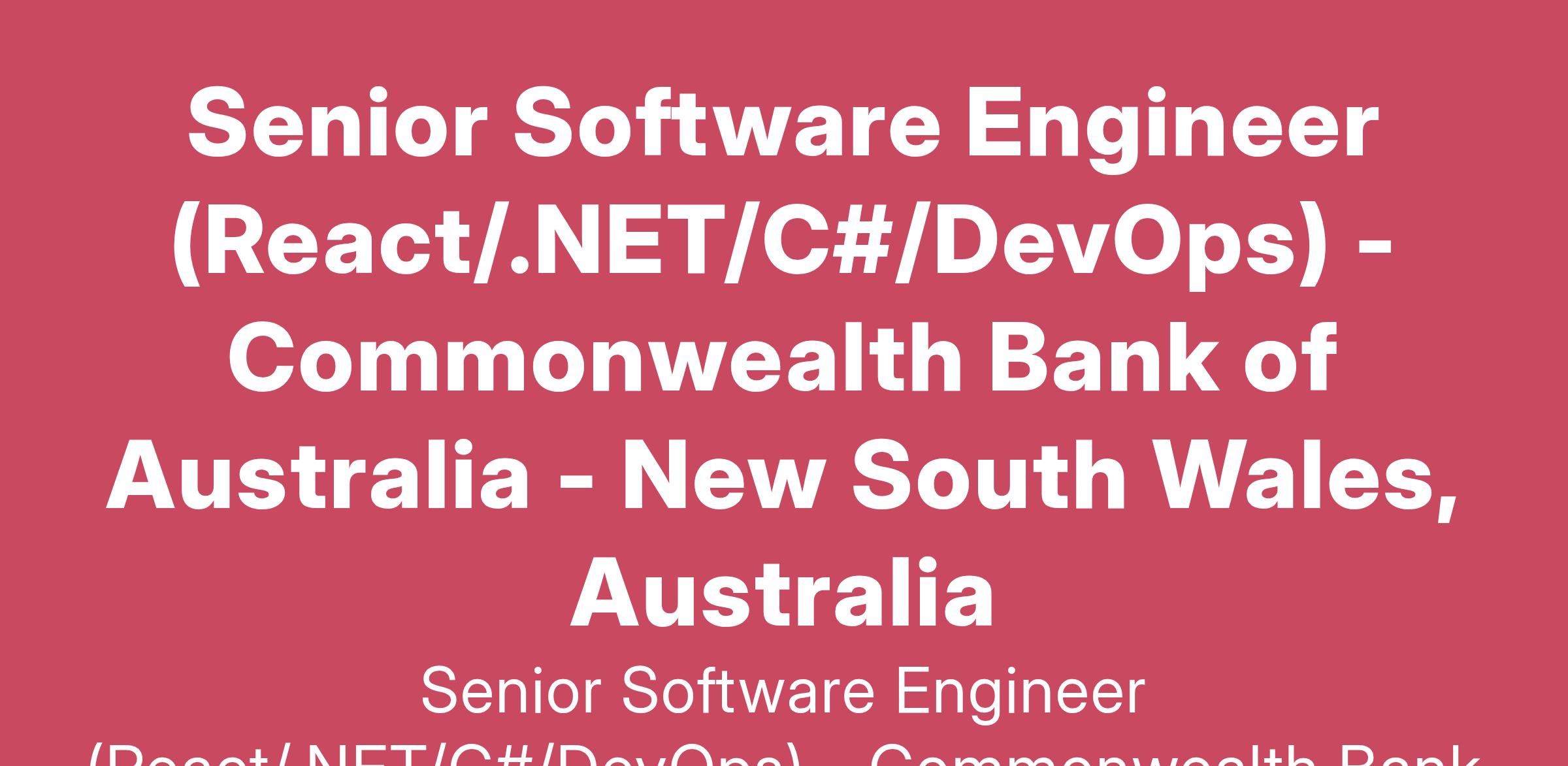 Senior Software Engineer (React/.NET/C#/DevOps) - Commonwealth Bank of Australia - New South Wales, Australia