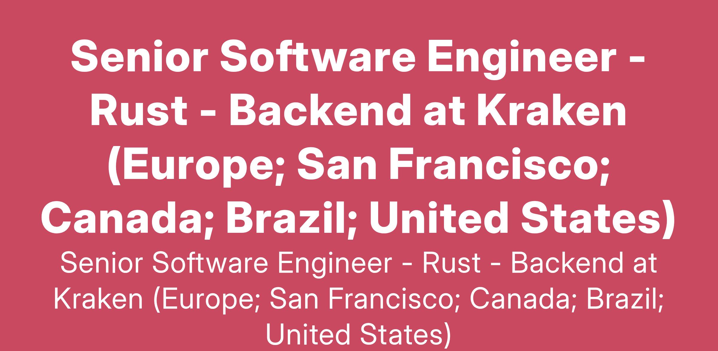 Senior Software Engineer - Rust - Backend at Kraken (Europe; San Francisco; Canada; Brazil; United States)