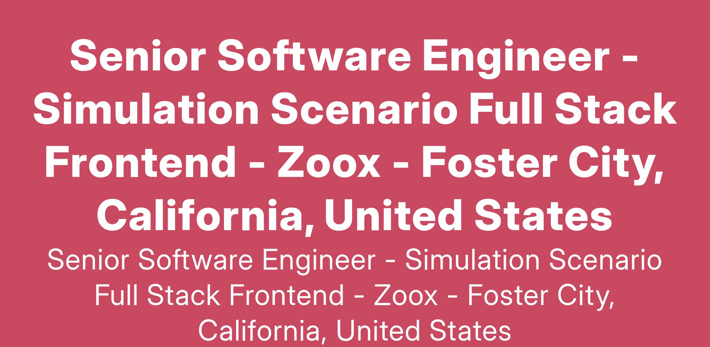 Do you enjoy creating intuitive interfaces that make complicated systems easy to understand and use? Are you interested in applying your skills to build tools for testing and ensuring the safety of autonomous vehicles? The Simulation Scenario Frameworks team at Zoox is looking for a full-stack engineer to enable and extend authoring of challenging real-world driving scenarios