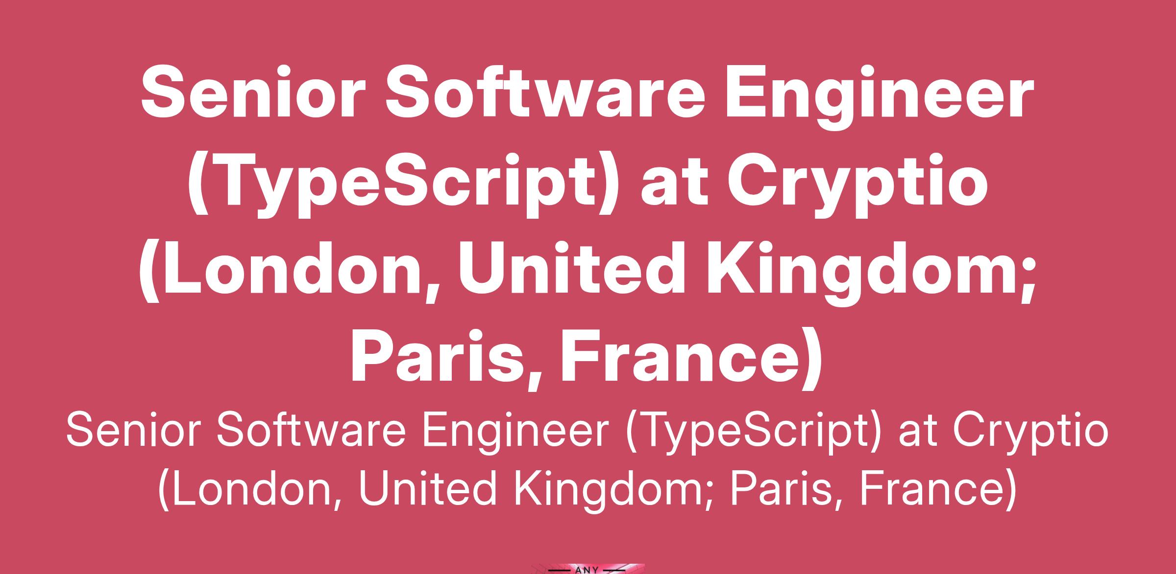 Senior Software Engineer (TypeScript) at Cryptio (London, United Kingdom; Paris, France)