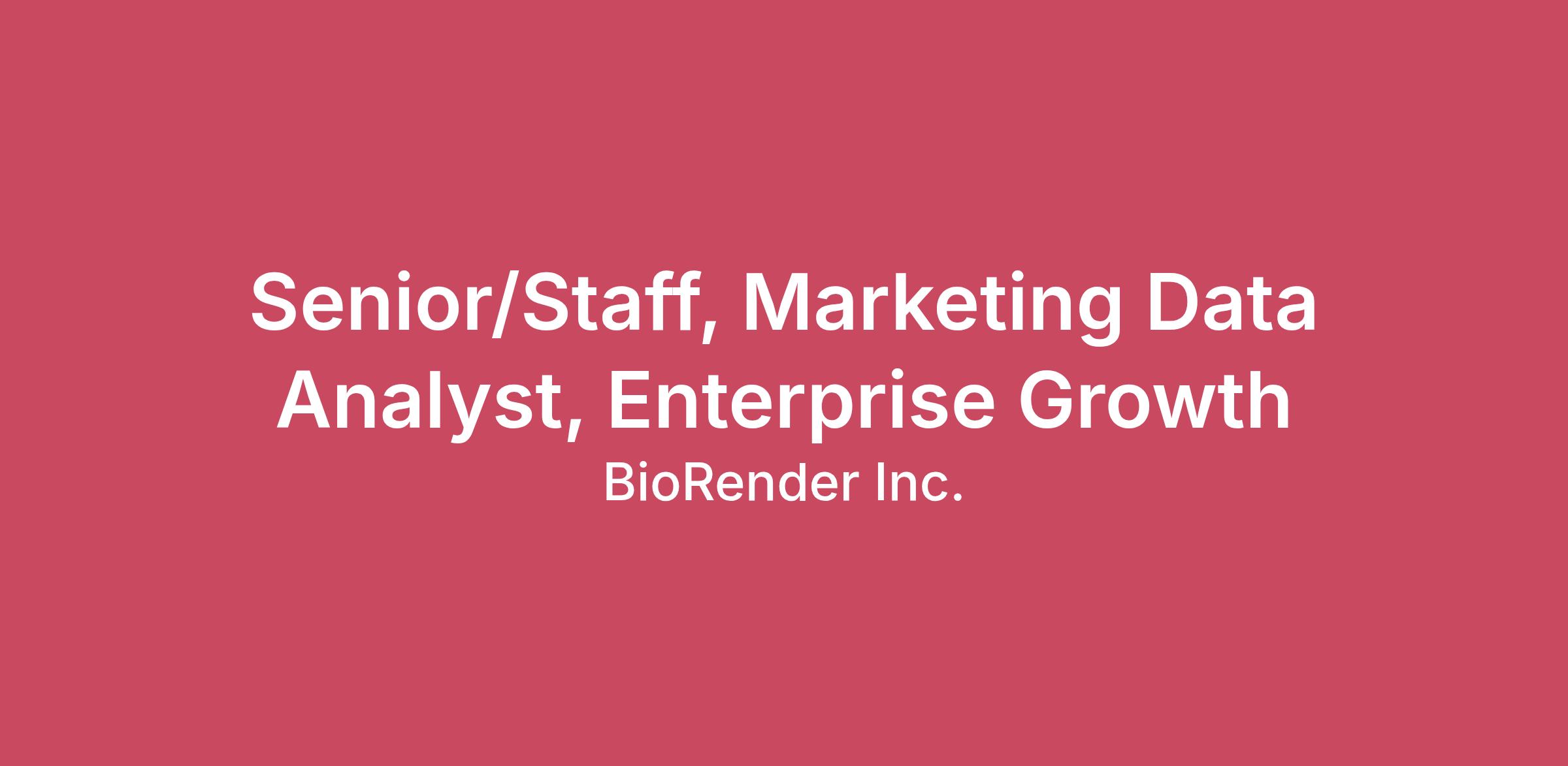At BioRender, we’re on a mission to accelerate the world’s ability to learn, discover, and communicate science — transforming how knowledge is shared and making science open, collaborative, and easily understandable by all.We’re shaping the future of science communication and are looking for talented individuals to help bring this vision to life! As a Staff Marketing Data Analyst on the Data team, you will serve as the strategic analytics partner to our CMO and Demand Generation team. Your mandate is to increase Marketing-Sourced ARR and Enterprise Pipeline by turning demand generation into a measurable, optimizable revenue engine. This role sits at the intersection of Marketing, Sales, and Data, with a strong focus on enterprise and full-service growth.This is a rare opportunity to operate as a staff-level revenue partner with direct influence on marketing investment, sales conversion, and enterprise growth strategy.What you'll be doing Drive analysis directly tied to Marketing-Sourced ARR and Enterprise Pipeline, ensuring marketing investments are measurable and defensibleLeverage AI tools to accelerate revenue analysis, surface funnel insights, and increase experimentation velocity across Marketing and SalesEstablish and refine attribution frameworks that connect campaigns to pipeline and closed-won revenueAnalyze behavioral data across website journeys, campaign touchpoints, and qualification flows to identify high-intent enterprise signalsDiagnose MQL to SQL to closed-won funnel performance and uncover structural pipeline leakagePartner with Sales leadership to analyze qualification patterns, call outcomes such as Gong insights, and conversion driversEvaluate paid and organic channel performance based on incremental pipeline and ARRTurn organic and inbound traffic into qualified enterprise pipeline through segmentation and funnel optimizationShape and prioritize the marketing experimentation roadmap with a clear focus on measurable revenue impactDesign and analyze statistically sound marketing and funnel experiments, balancing speed and business confidenceReplace manual reporting with scalable data models and automated analyses using SQL and warehouse toolingEstablish consistent metric definitions across Marketing and Sales to ensure durable alignmentWhat you bring to the table Proven ownership of revenue-impacting analytics with direct influence on Marketing-Sourced ARR, Enterprise Pipeline, or CAC efficiency in a B2B SaaS environmentAI-forward analytical practice with clear examples of using LLMs or automation to accelerate insight generation, improve funnel diagnostics, and scale experimentationDeep expertise in enterprise B2B funnels including MQL to SQL to closed-won conversion, pipeline leakage identification, and sales acceptance dynamicsStrong attribution and measurement experience with the ability to design, refine, and defend attribution frameworks in conversations with senior marketing and revenue leadersStaff-level strategic influence with demonstrated experience challenging assumptions, reallocating budget based on ROI, and protecting marketing investment disciplineStrong experimentation judgment with experience designing statistically sound marketing and funnel tests prioritized around revenue impactAutomation-first systems mindset with advanced SQL proficiency and comfort working across warehouse modeling tools such as dbt, BI platforms, and Python or RExperience operating in complex B2B SaaS environments with enterprise sales motions, longer sales cycles, and tight alignment between Marketing and Sales