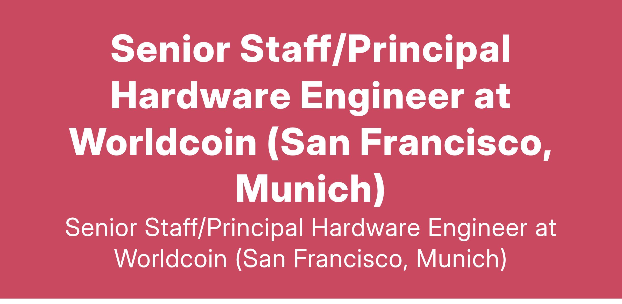 Senior Staff/Principal Hardware Engineer at Worldcoin (San Francisco, Munich)
