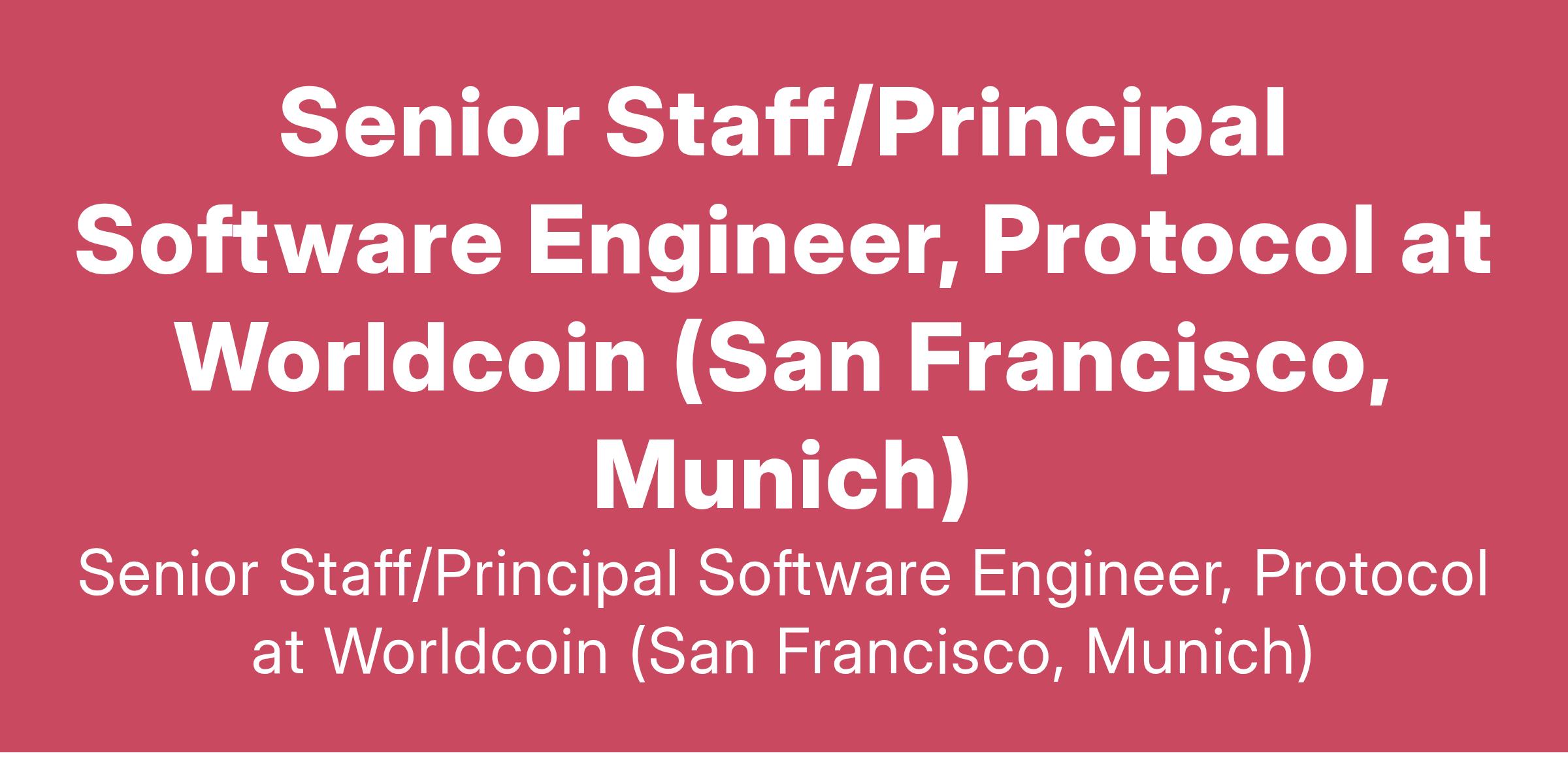 Senior Staff/Principal Software Engineer, Protocol at Worldcoin (San Francisco, Munich)