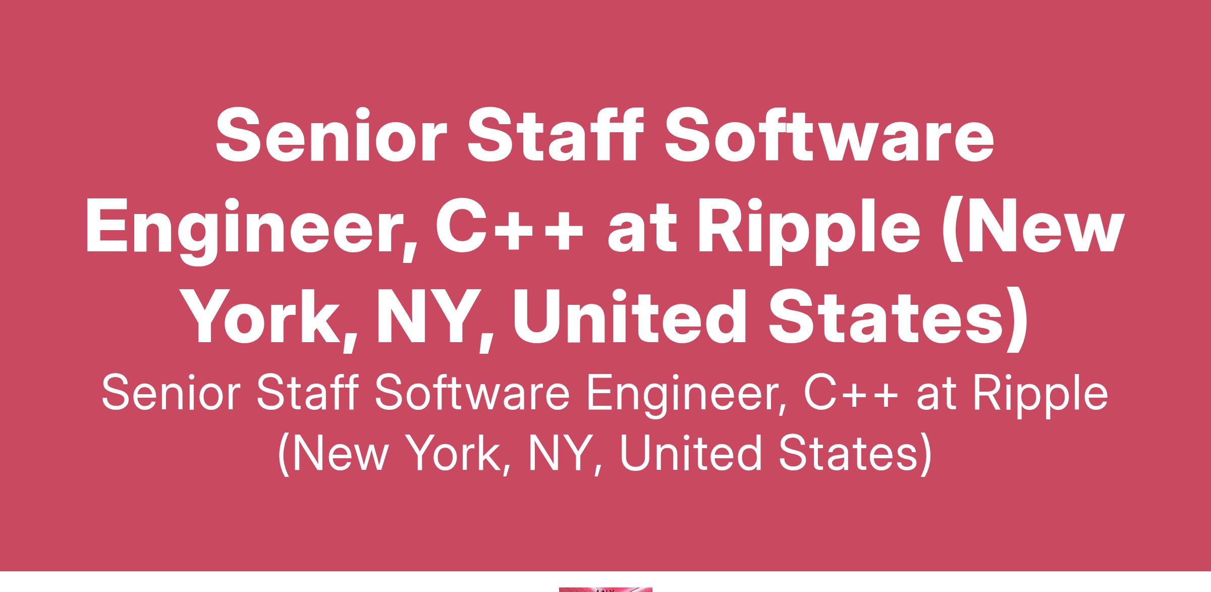 Senior Staff Software Engineer, C++ at Ripple (New York, NY, United States)