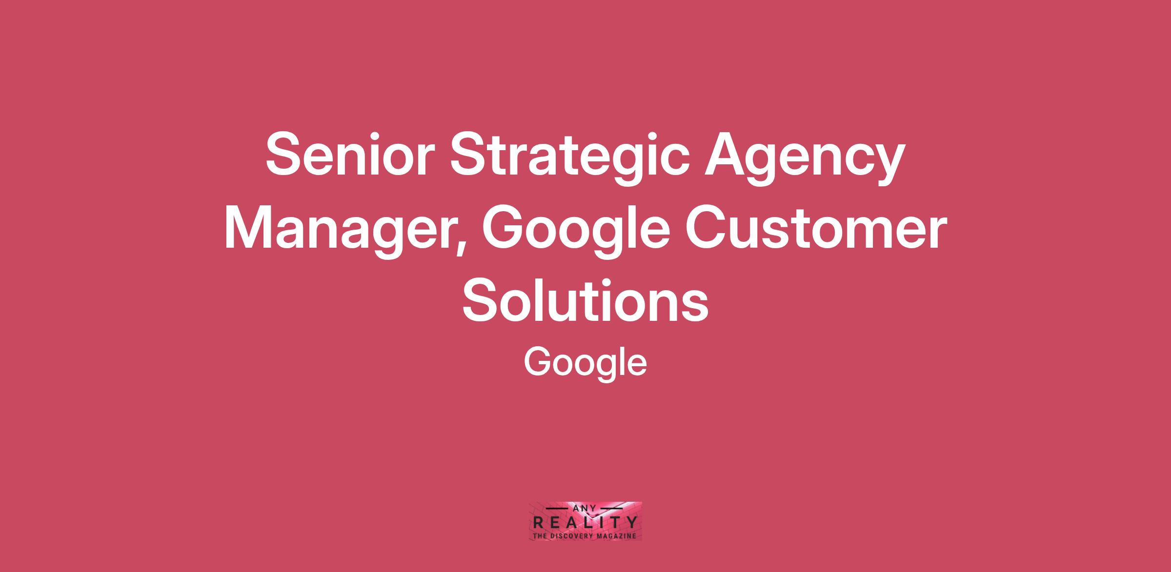 - Collaborate with agency counterparts on cross-channel agencies, align on strategic and product priorities with Google Customer Solutions (GCS) to provide a cohesive experience to our agencies and their clients.