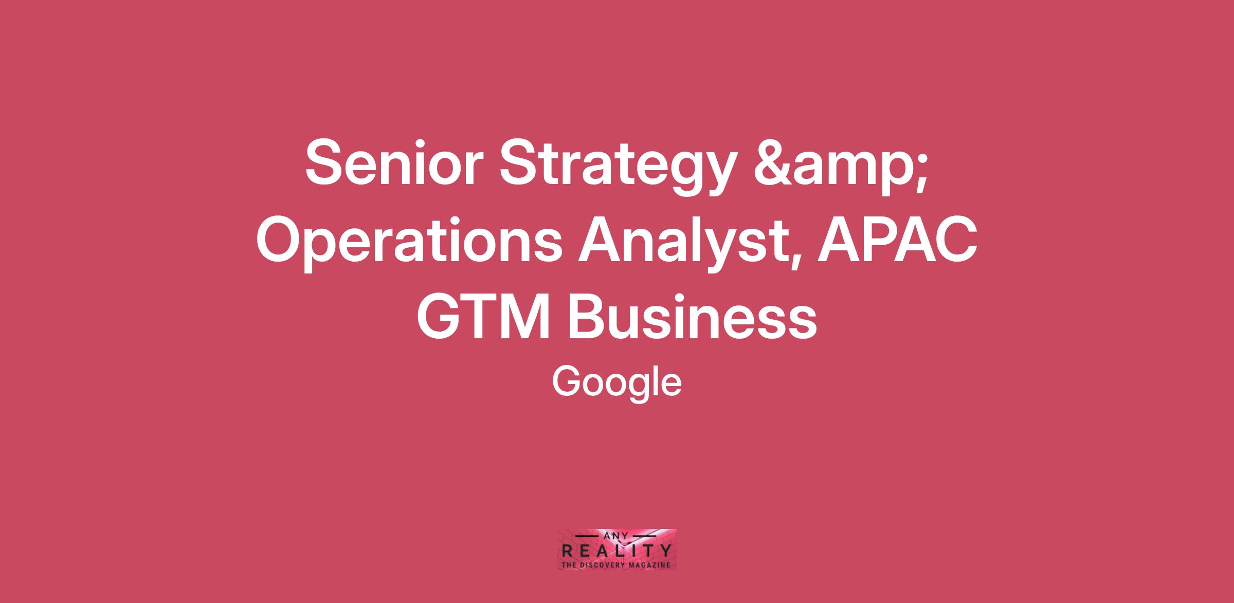 We seek a proactive and strategic Senior Analyst to join the APAC GTM Analysts team. If you thrive on identifying structural opportunities, translating complex operational data into actionable strategies, and leading initiatives that enhance business rigor, Google invites you to explore this role.