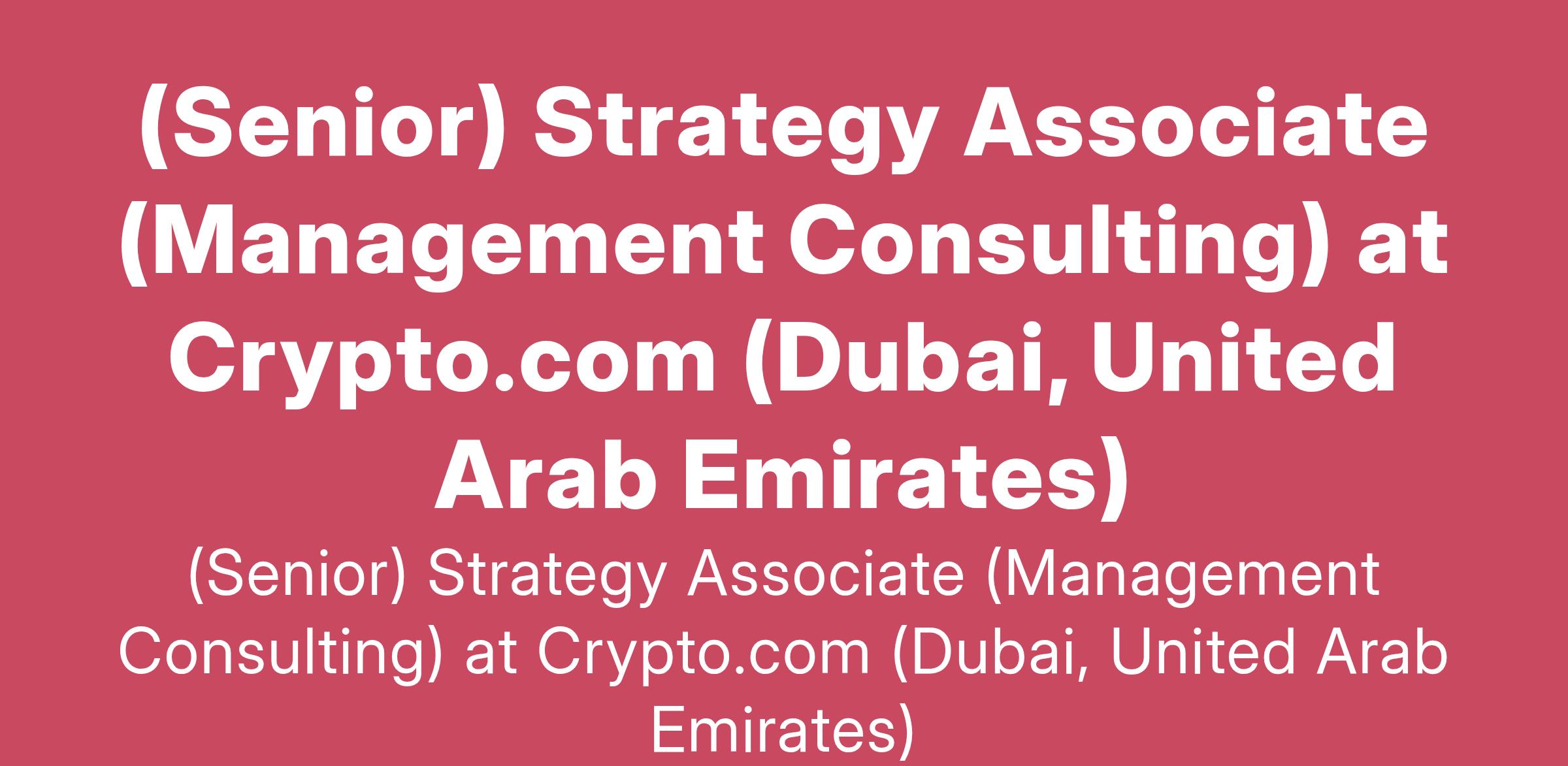 (Senior) Strategy Associate (Management Consulting) at Crypto.com (Dubai, United Arab Emirates)