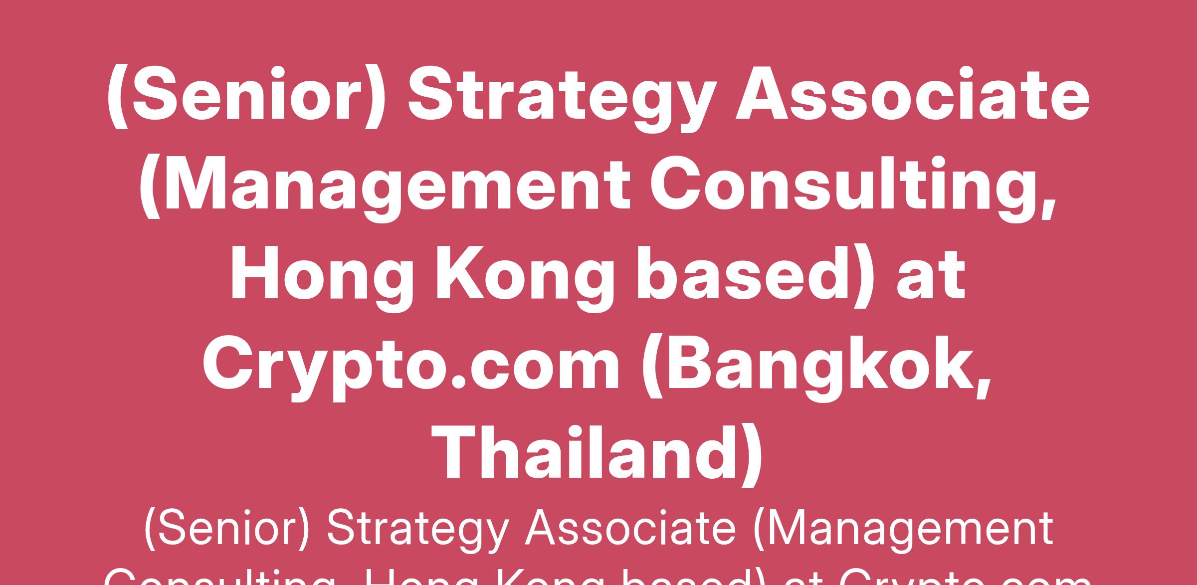 (Senior) Strategy Associate (Management Consulting, Hong Kong based) at Crypto.com (Bangkok, Thailand)