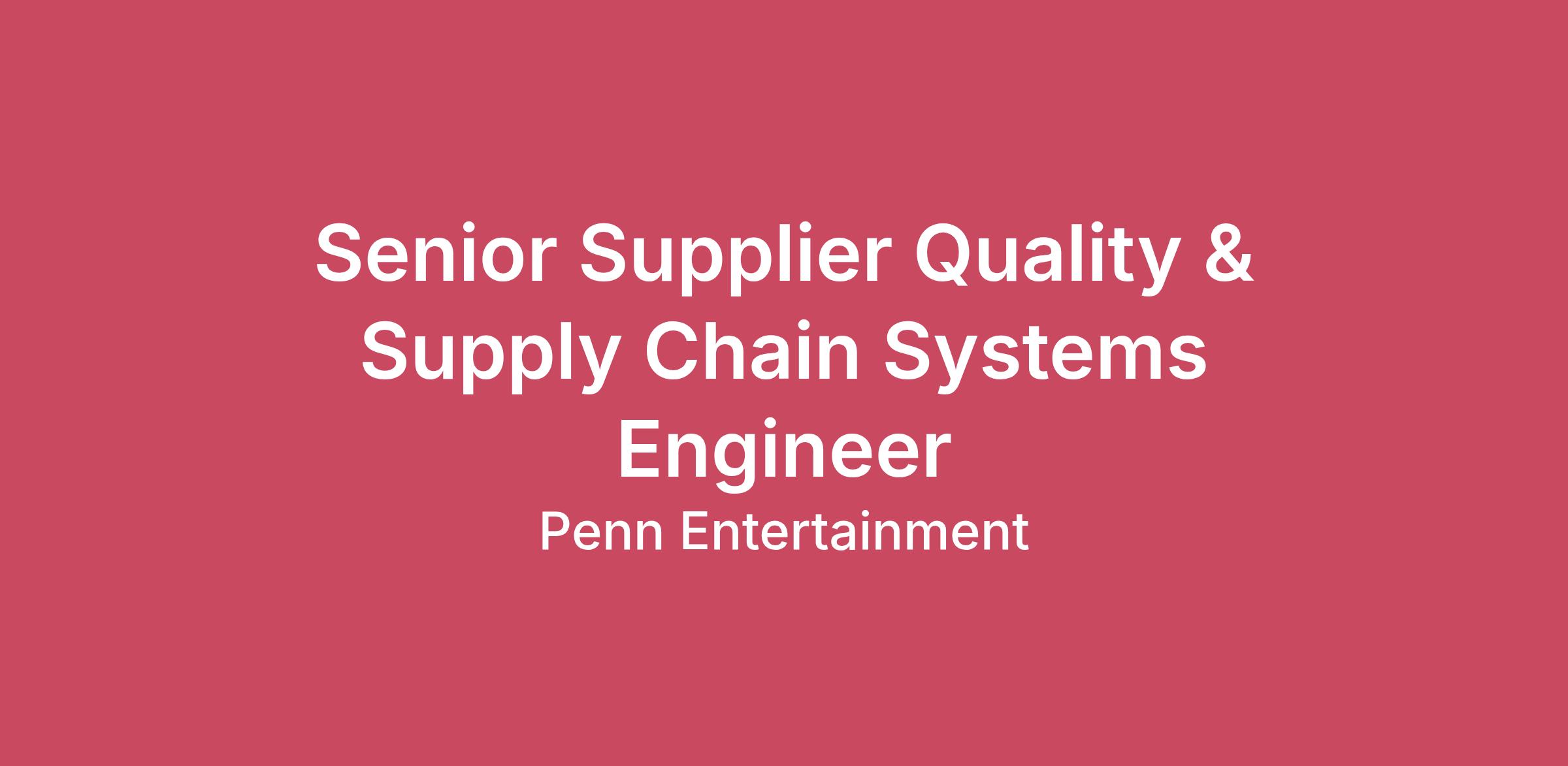 Senior Supplier Quality & Supply Chain Systems Engineer