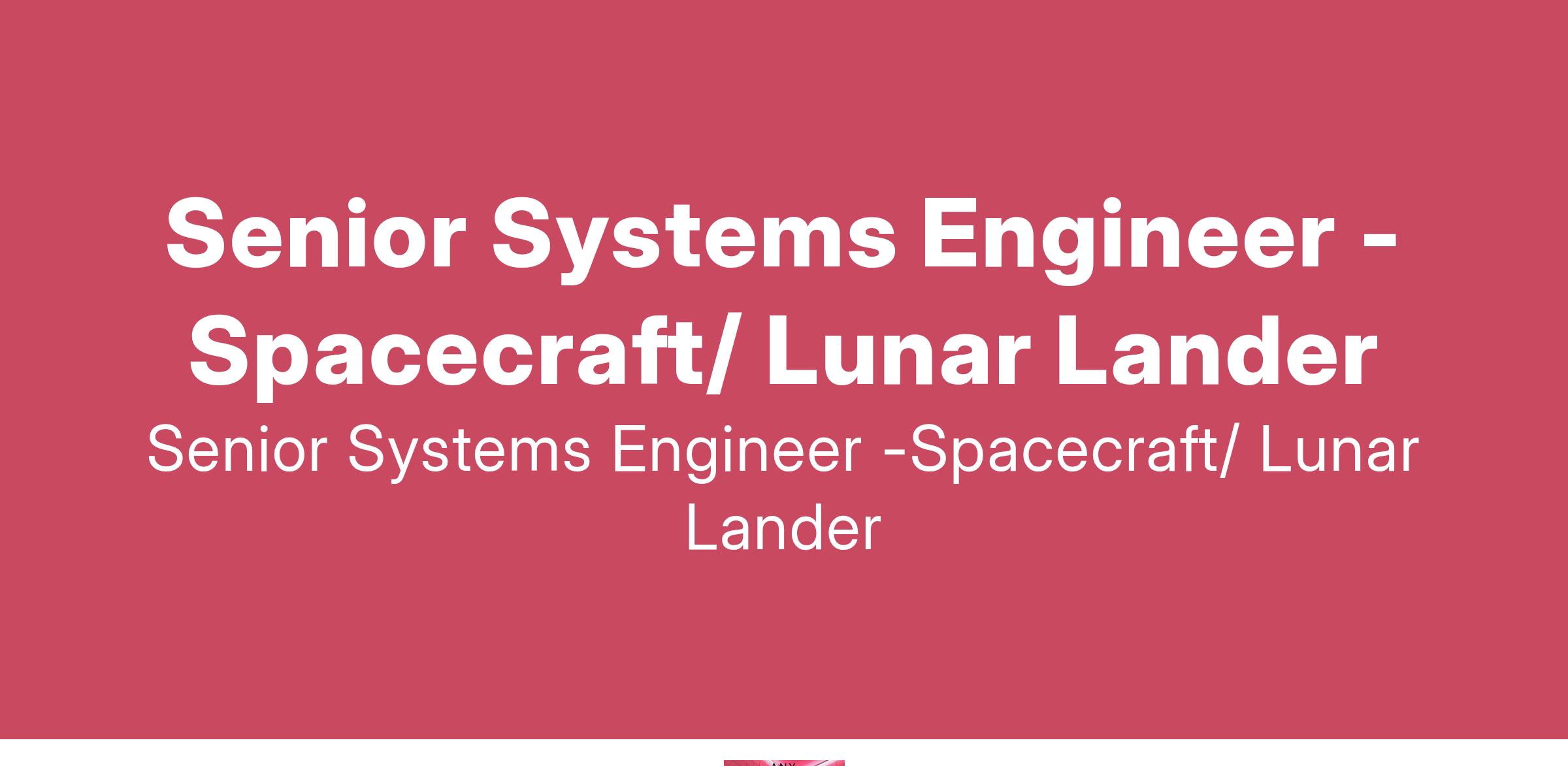Senior Systems Engineer -Spacecraft/ Lunar Lander