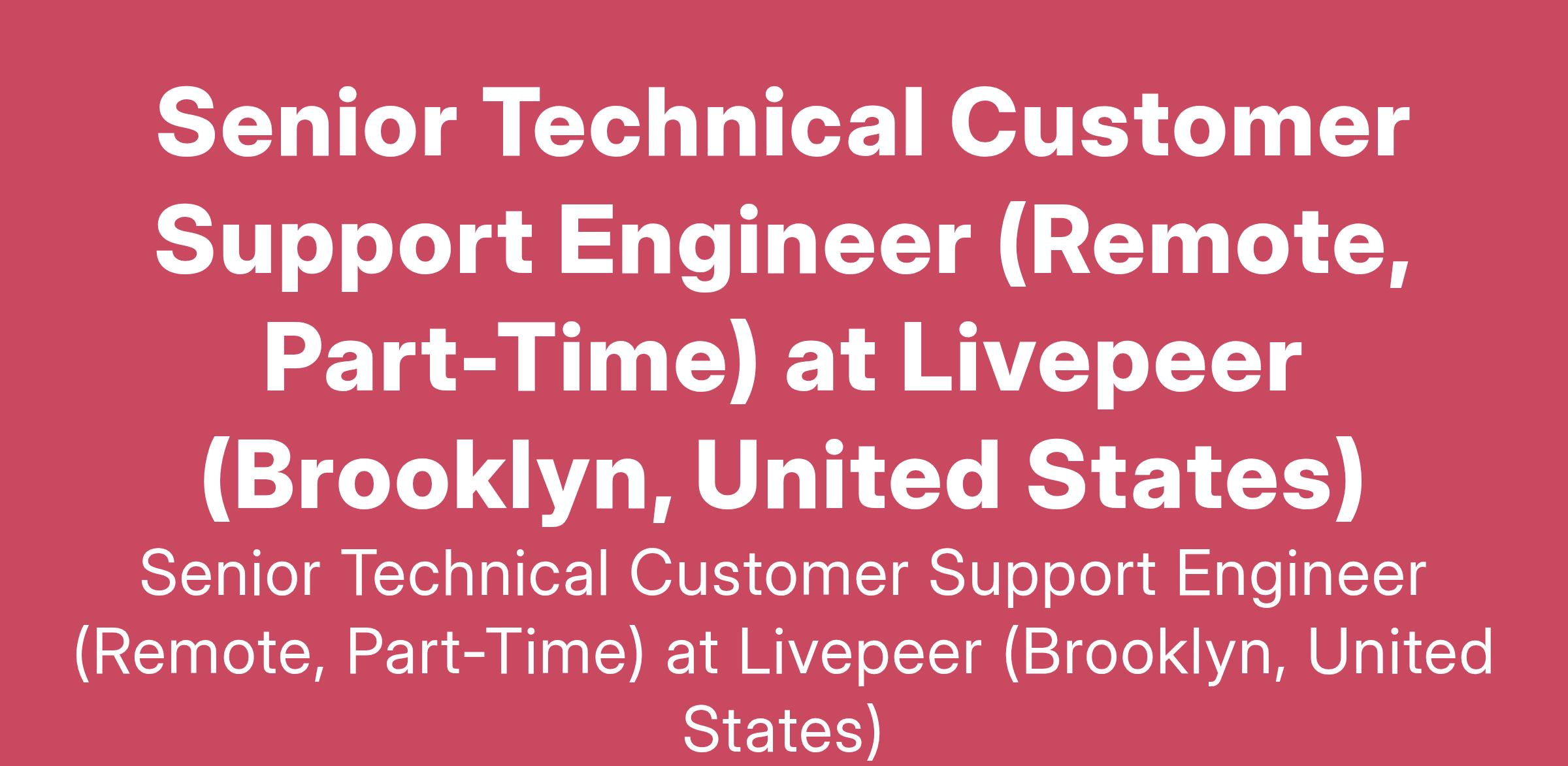 Senior Technical Customer Support Engineer (Remote, Part-Time) at Livepeer (Brooklyn, United States)