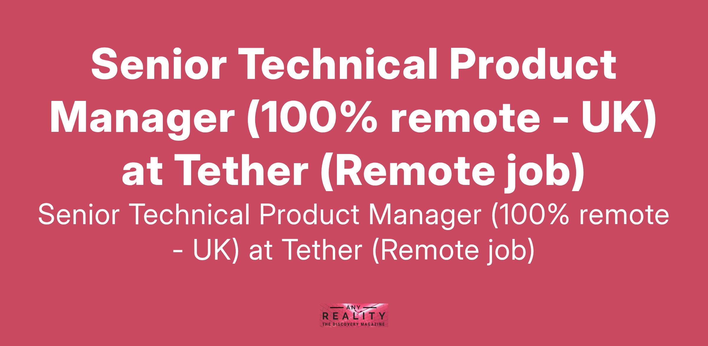 Senior Technical Product Manager (100% remote - UK) at Tether (Remote job)