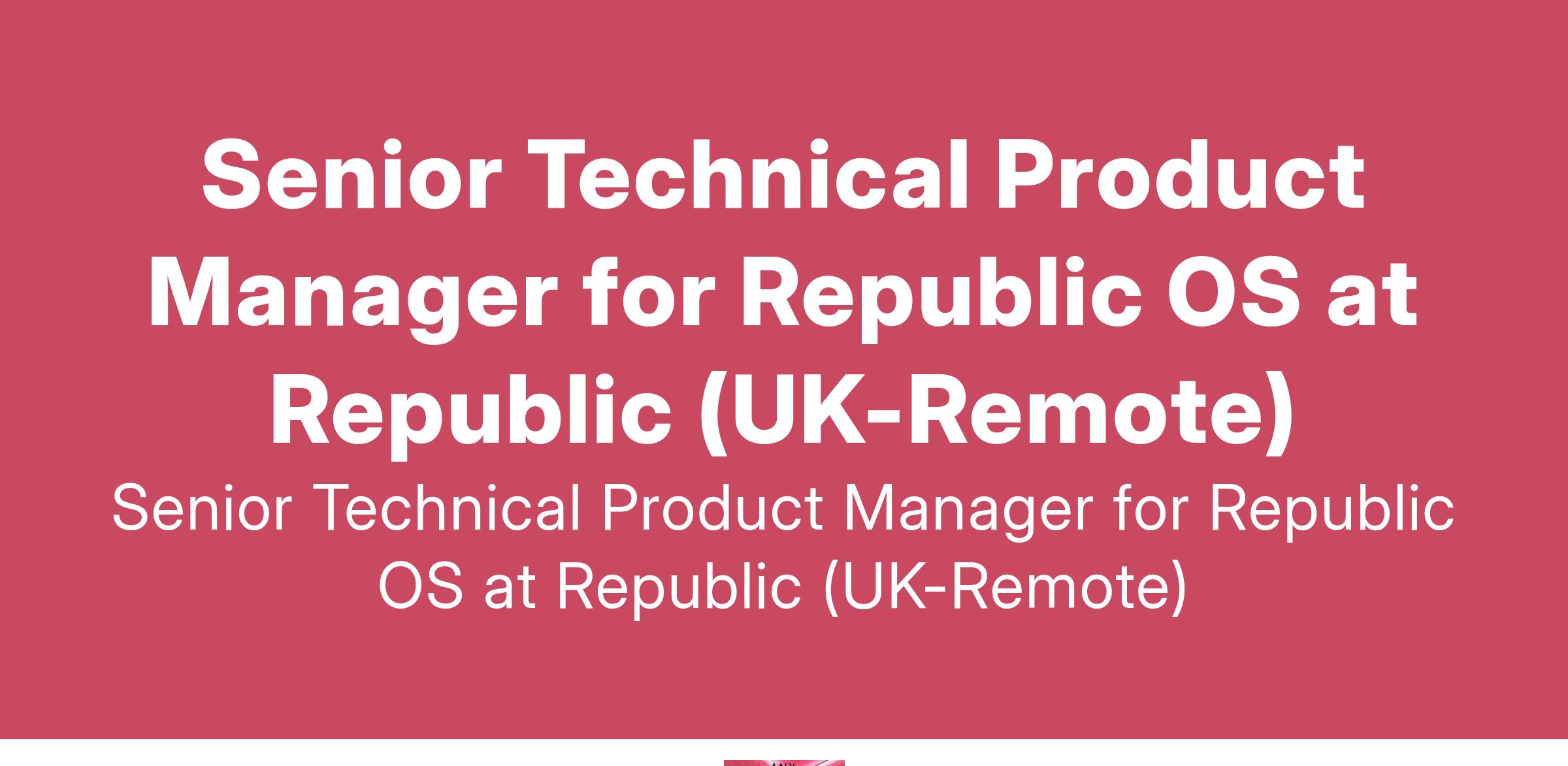 Senior Technical Product Manager for Republic OS at Republic (UK-Remote)