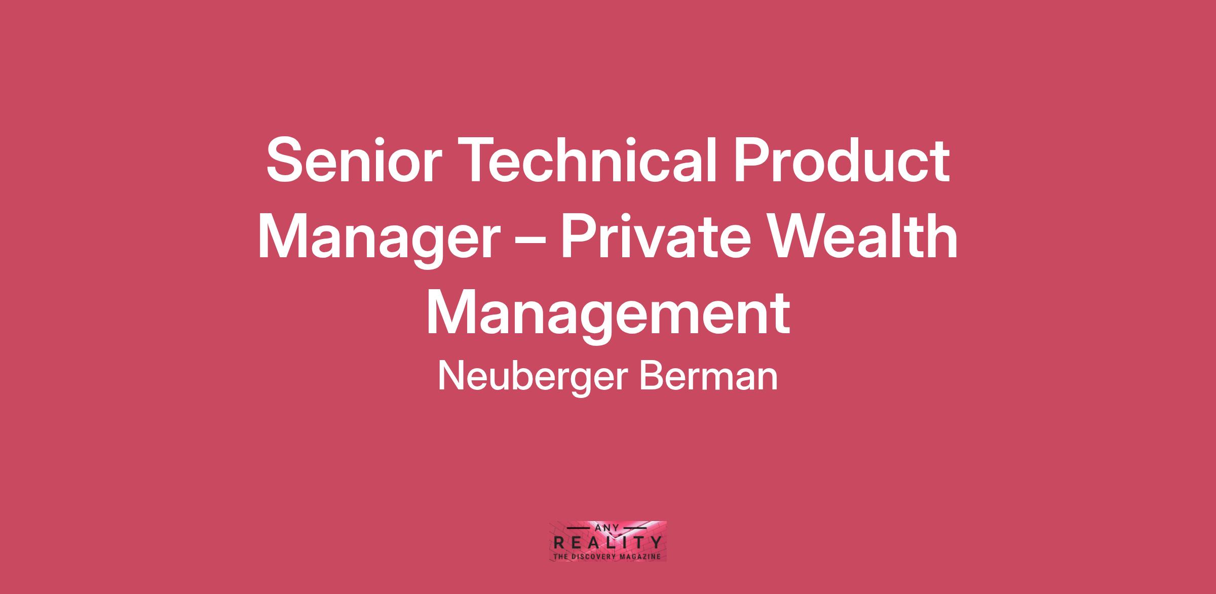 We are looking for a self-directed, proactive, and results-oriented experienced Technical Product Manager with strong Private Wealth Management experience with a focus on Advisor and Client solutions. This role requires exceptional communication, project management, problem-solving, and leadership skills. It requires the ability to work effectively with individuals at all levels of the organization, both within Technology and the Private Wealth business. This individual would support Neuberger Berman’s multi-year strategic program focused on delivering technology products and a platform supporting Wealth Advisors and their clients. Product solutions will include both in-house development and vendor application integrations. You will be responsible for user engagement, current/future state process and solutions documentation, Technology deliverables, and planning/tracking implementations.Responsibilities:Collaborate closely with project team members and senior business and technology stakeholders to understand business challenges and current processes.Lead the user experience and end-user reporting integration for various tools and technologies used or targeted for internal advisors and portfolio management teams.Manage multiple complex initiatives simultaneously, ensuring timely completion and alignment with organizational goals. This includes coordinating among team members, stakeholders, and cross-functional partners, delegating tasks, identifying and escalating risks, and managing timelines.Partner with advisors and other business control functions to identify and analyze current and future needs for private wealth monthly/quarterly client-facing reporting.Represent Neuberger Berman Technology alongside advisor training teams during the rollout of new processes and tools.Own and lead the setting of project scope, execution, and implementation.Act as the liaison between Neuberger Berman and vendors, overseeing documentation, data feeds, meetings, and communication.Understand current processes and tools used by Neuberger Berman and map target state requirements for existing or new systems.Ensure timely milestone achievement and regularly update and communicate plans to stakeholders.Requirements: Must-Have RequirementsA minimum of 10 years of business analysis and project management experience, with a strong emphasis on Agile methodologies.A minimum of 10 years of experience in Private Wealth management or Investment Advisory function.Demonstrated experience with Wealth Management Client Reporting functions (Performance Calculations, Fund Structures, etc.).A solid understanding of financial planning principles, investment strategies, and prospect/client lifecycle management. Experience with one or more Wealth Planning tools like eMoney, MoneyGuidePro, etc.Solid understanding of Vendor (Addepar, InvestCloud, etc.) or in-house built Advisor Desktop/Portals and Salesforce CRM functions.Proficiency with SQL query and data analytics tools (Tableau, Cognos, etc.).Proficiency in Microsoft Excel, Visio, PowerPoint, and UX mock-up tools.Experience with Azure DevOps for agile management and/or JIRA.Strong presentation, writing, and communication skills.Nice-to-Have / Preferred / PlusFamiliarity with Private Investment landscape (Private Equity, Hedge Funds, etc.) and associated reporting and tools (Investment Cafe, Chronograph, etc.).Proficiency with business process workflow tools (Monday.com, Asana, etc.).Familiarity with proposal generation platforms (Aladdin Wealth, FMAX, etc.).Desired knowledge of FinTech solutions and options in the market for Private Bank/Wealth Management business.Familiarity with Vibe Coding concepts.A master’s degree (MBA or MSNeuberger Berman is unable to offer visa sponsorship for this position. Applicants must be authorized to work in the United States without the need for current or future sponsorship.#LI-DD2#LI-HybridCompensation DetailsThe salary range for this role is $140,000-$170,000. This is the lowest to highest salary we in good faith believe we would pay for this role at the time of this posting. We may ultimately pay more or less than the posted range, and the range may be modified in the future. This range is only applicable for jobs to be performed in the job posting location. An employee’s pay position within the salary range will be based on several factors including, but limited to, relevant education, qualifications, certifications, experience, skills, seniority, geographic location, business sector, performance, shift, travel requirements, sales or revenue-based metrics, market benchmarking data, any collective bargaining agreements, and business or organizational needs. This job is also eligible for a discretionary bonus, which, along with base salary and retirement contributions, is part of our total comprehensive package. We offer a comprehensive package of benefits including paid time off, medical/dental/vision insurance, retirement, life insurance and other benefits to eligible employees.Note: No amount of pay is considered to be wages or compensation until such amount is earned, vested, and determinable. The amount and availability of any bonus, commission, production, or any other form of compensation that are allocable to a particular employee remains in the Company's sole discretion unless and until paid and may be modified at the Company’s sole discretion, consistent with the law.Neuberger Berman is an equal opportunity employer. The Firm and its affiliates do not discriminate in employment because of race, creed, national origin, religion, age, color, sex, marital status, sexual orientation, gender identity, disability, citizenship status or protected veteran status, or any other characteristic protected by local, state, or federal laws, rules, or regulations. If you would like to contact us regarding the accessibility of our website or need assistance completing the application process, please contact onlineaccommodations@nb.com.L