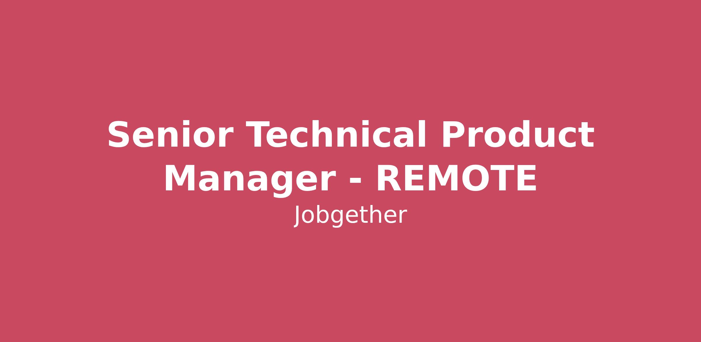 Senior Technical Product Manager - REMOTE