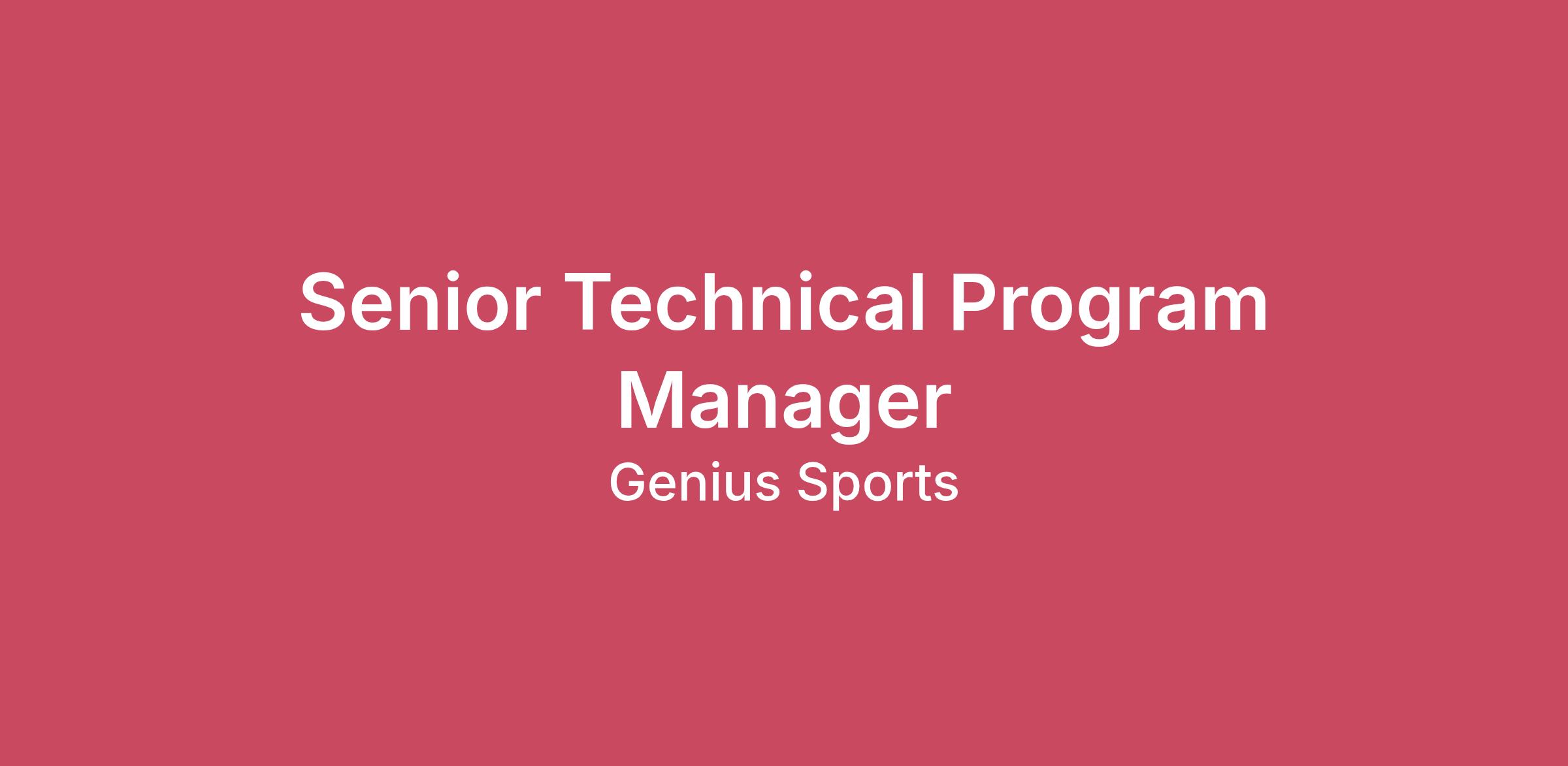 We are seeking a Senior Technical Program Manager to drive execution, alignment, and delivery across the core infrastructure platform. Genius Sports is aligning multiple technology teams and acquired platforms under a unified technical strategy. This role is central to ensuring those efforts move forward in a coordinated, predictable way.