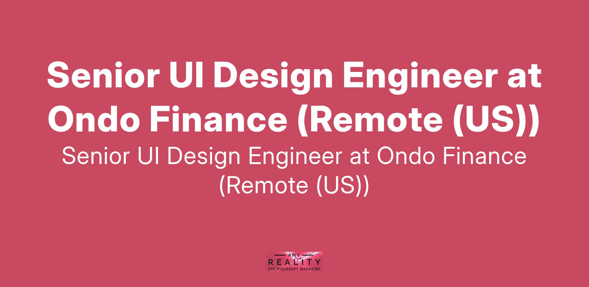 Senior UI Design Engineer at Ondo Finance (Remote (US))