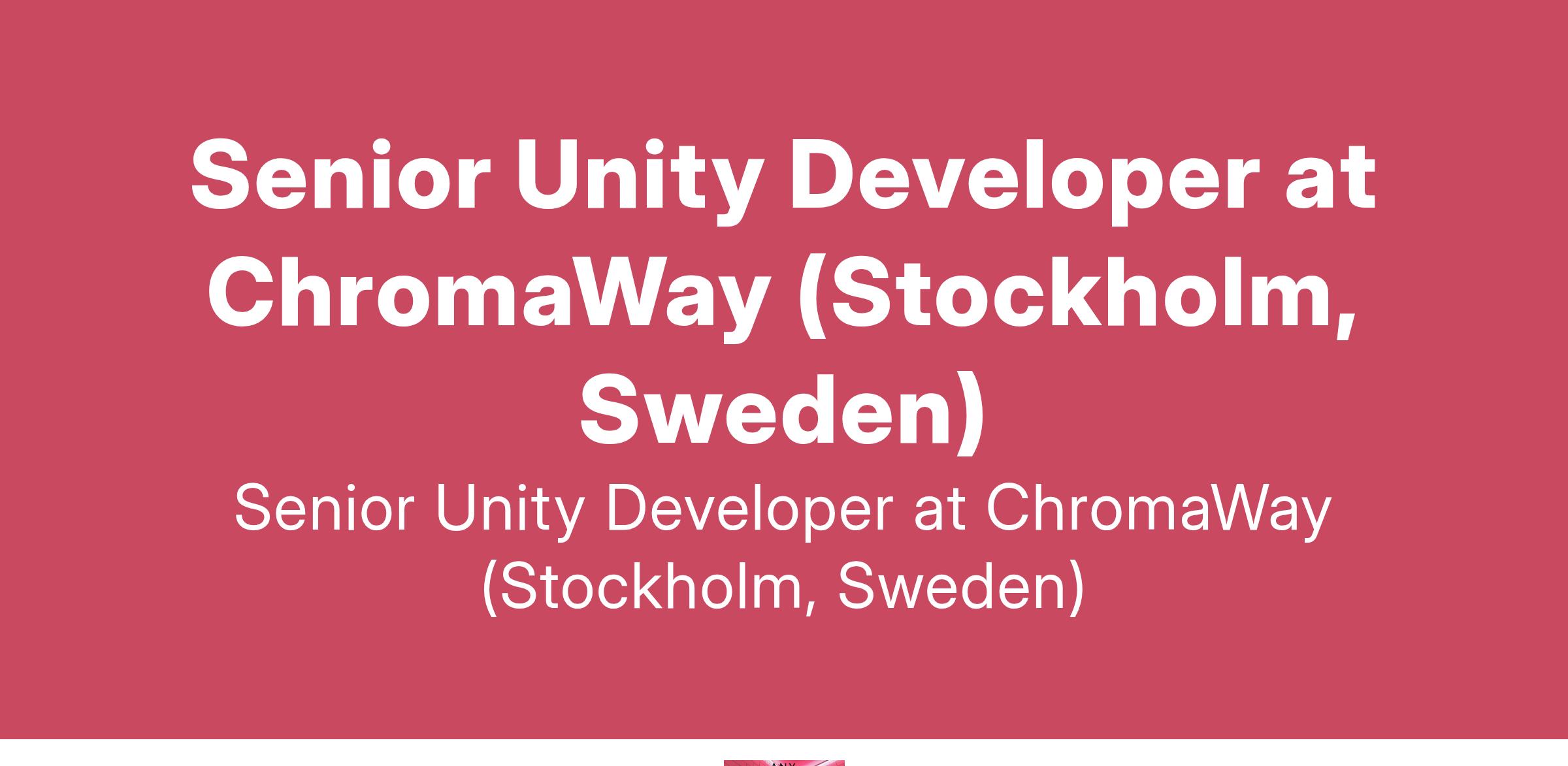 Senior Unity Developer at ChromaWay (Stockholm, Sweden)