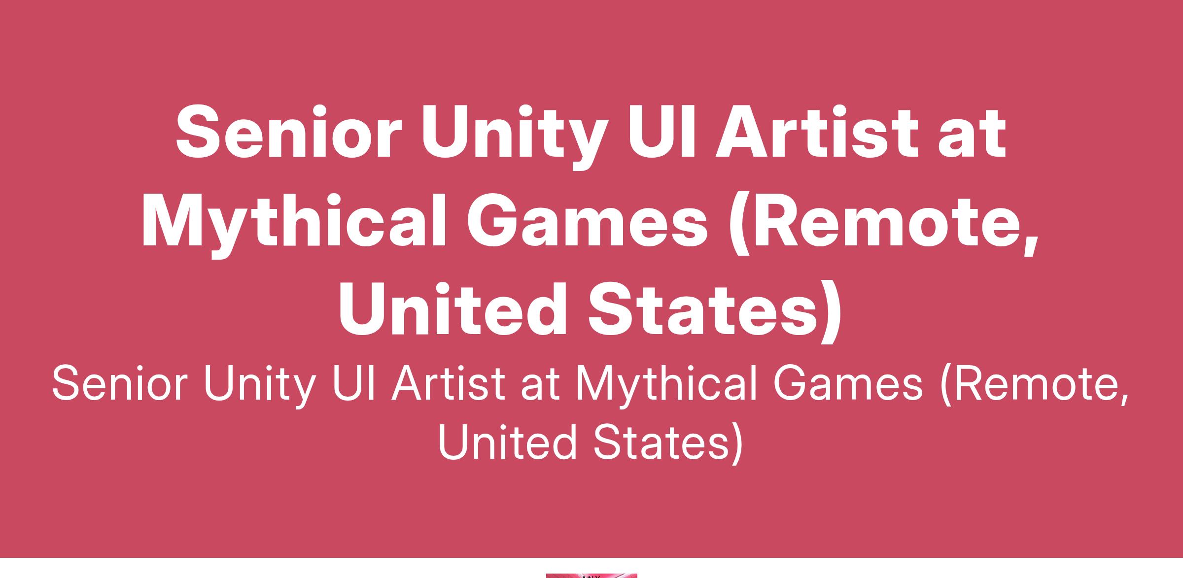 Senior Unity UI Artist at Mythical Games (Remote, United States)