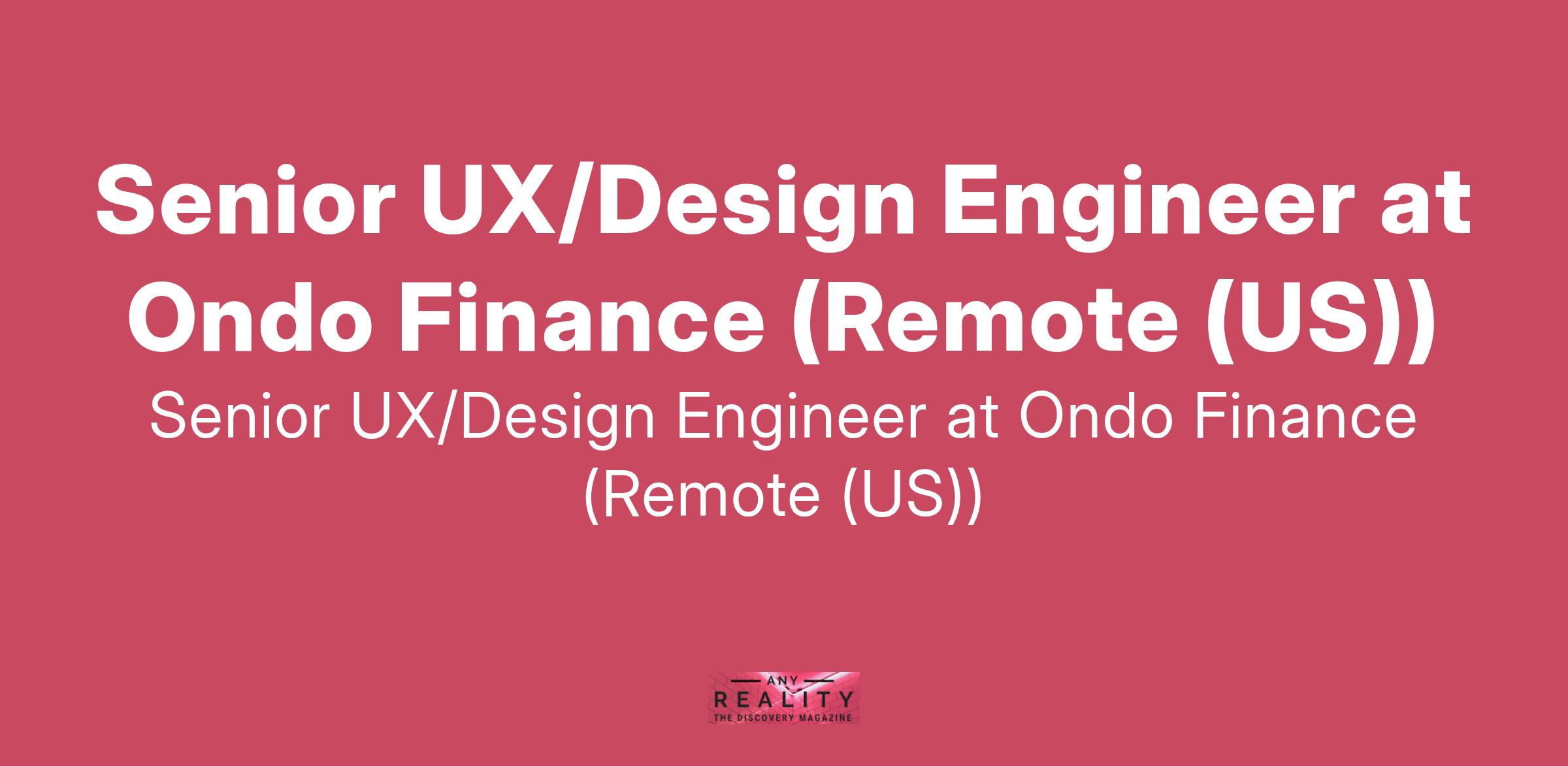 Senior UX/Design Engineer at Ondo Finance (Remote (US))