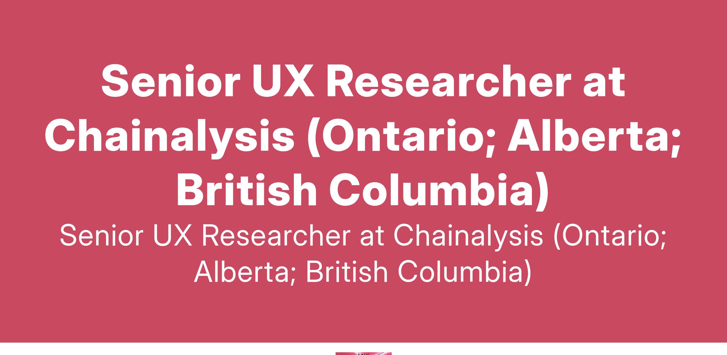 Senior UX Researcher at Chainalysis (Ontario; Alberta; British Columbia)