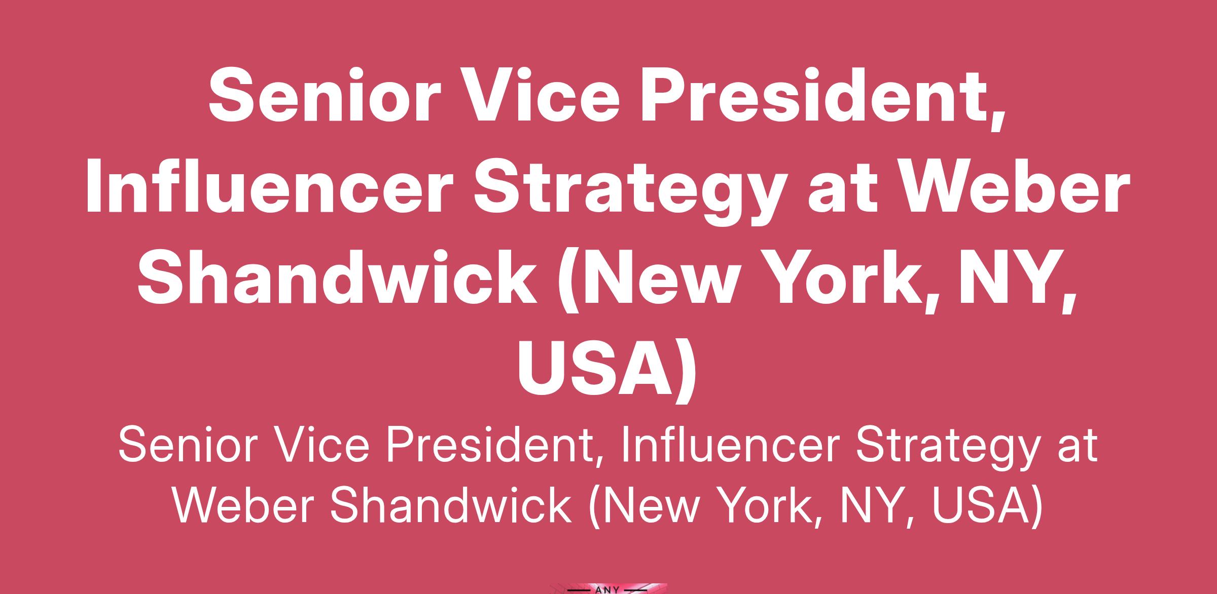 Senior Vice President, Influencer Strategy at Weber Shandwick (New York, NY, USA)