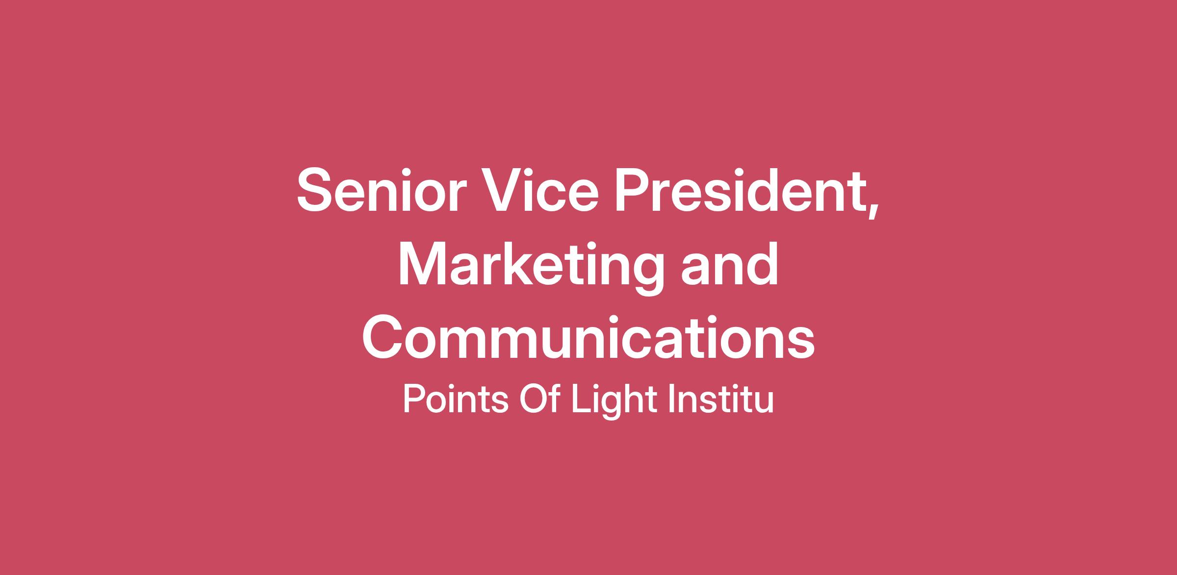 Application Process: To ensure fair and consistent review, Points of Light accepts applications only through the online application process. Please do not send application materials to individual staff, officers or hiring managers. If you were referred by a Points of Light employee, select the referral/source option in the application and list the employee’s name.Application Deadline: Sunday, October 26, 2025Join Points of Light and Change the WorldAs the world’s largest organization dedicated to increasing volunteer service, Points of Light engages more than 3.8 million volunteers across 32 countries.Cast from the vision of one thousand points of light shared by its founder, President George H.W. Bush, in his 1989 inaugural address, Points of Light was founded in 1990 as an independent, nonpartisan, nonprofit organization to encourage and empower the spirit of service. The organization extends President Bush’s vision that “any definition of a successful life must include serving others.” Today, Points of Light continues to transcend politics and borders to inspire millions of individuals worldwide to take action. Join Us: Be part of a movement that changes lives and communities. Please read the position description below. For more information, visit pointsoflight.org. Salary: $150,000 - $175,000 annuallyReports to: President and Chief Executive OfficerDepartment: Marketing and Communications Location: Points of Light is a remote-first organization. Any U.S. location in the Eastern or Central time zone in a market with a major airport. Washington, DC preferred.Position Summary: The Senior Vice President, Marketing and Communications serves as a key member of the senior leadership team and the organization’s chief brand strategist. This role is responsible for elevating Points of Light’s reputation as the global leader of volunteering and civic engagement while driving engagement across donors, affiliates, corporate partners, and the public. The SVP provides strategic vision and leadership for all marketing and communications functions—including brand, creative, digital, PR, internal and executive communications—and ensures integration across channels.The ideal candidate is a transformational leader with deep expertise in brand building, marketing innovation, reputation management, and stakeholder engagement. This role requires a balance of high-level strategic thinking and operational excellence, with the ability to inspire a diverse team and deliver measurable results.Position Functions and Responsibilities Include:Lead Points of Light’s overall marketing and communications strategy, providing strategic counsel to departments, programs, events, and campaigns and overseeing integrated plans that support enterprise priorities to ensure alignment with mission impact.Ensure marketing and communications strategies advance organizational revenue and philanthropic goals, including lead generation for corporate partnerships and signature events (e.g., conference), and position Points of Light as a compelling investment to grow global volunteerism.Monitor and translate industry trends and audience insights into strategy updates that improve reach, relevance, and ROI.Oversee brand strategy, creative development, and design to ensure a consistent, compelling identity.Manage external vendors (e.g., PR agencies, consultants, creative partners) to augment capacity and deliver against KPIs.Drive integrated digital marketing, social media, and content strategies to expand reach, engagement, and visibility.Guide executive, internal, and external communications to align messaging across audiences and elevate thought leadership.Provide leadership and counsel to the CEO and executive team on marketing, brand, and communications matters.Manage issues and crisis communications to safeguard organizational reputation.Lead, mentor, inspire and support a high-performing team.Oversee budget and resource allocation for the marketing and communications function.Establish and track key metrics to evaluate effectiveness of marketing and communications initiatives.Represent Points of Light externally as a senior spokesperson and brand ambassador when needed.Serve as liaison to the Board of Directors on marketing matters as well as collaborate with Chief Development Officer on Board Resource Development and External Affairs Committee agendas, Committee Chair preparation and stewardship and meeting minutes.Core Knowledge, Skills and Abilities:Proven expertise in brand building, marketing strategy, communications, and reputation managementStrong executive presence with ability to engage credibly with the CEO, board, funders, and mediaDeep understanding of digital marketing trends, audience engagement, and storytelling; comfort with data analytics to measure and optimize campaign effectivenessExperience leading integrated teams across creative, digital, PR, and communicationsAbility to balance strategic vision with operational executionDemonstrated track record of success working at scale serving the nonprofit sectorStrong leadership skills with a track record of developing and inspiring teamsDemonstrated crisis communication skills (rapid response, empathy, transparency); success operating in fast-paced, multicultural contexts; highly collaborative style grounded in integrityStrong computer skills, including Microsoft Office. Knowledge of Salesforce, program management software (Asana), and data analytics/visualization tools are a plusRequirements: Bachelor’s degree in journalism, marketing, communications, business, or related field 15+ years of progressive leadership in marketing and communications, including executive-level experience; experience in nonprofit, purpose-driven, or corporate social impact sectors strongly preferredDemonstrated success in brand repositioning, digital marketing, and communications transformationExperience overseeing multi-functional teams and managing significant budg