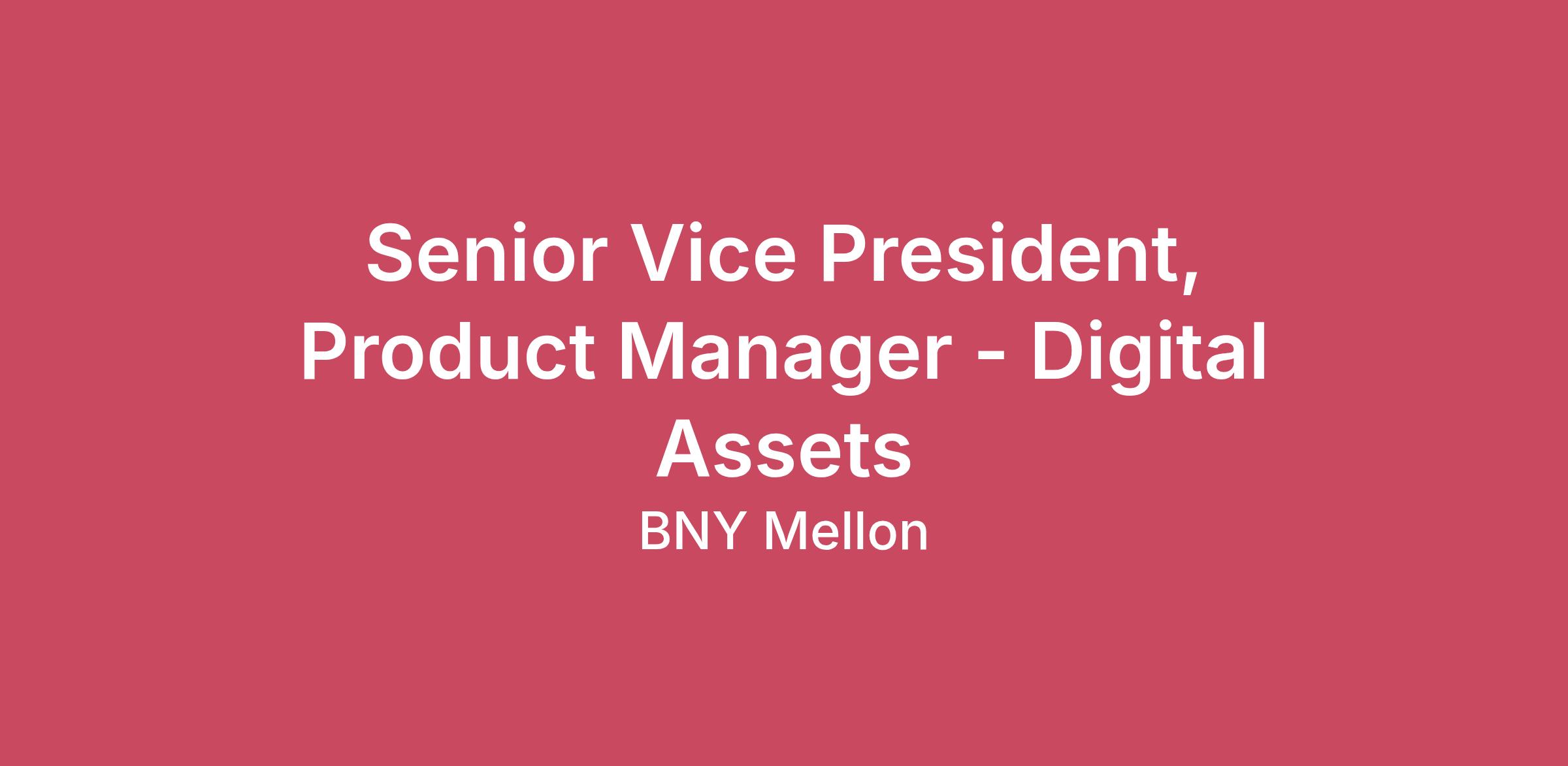 DescriptionSenior Vice President, Product Manager - Digital AssetsAt BNY, our culture allows us to run our company better and enables employees’ growth and success. As a leading global financial services company at the heart of the global financial system, we influence nearly 20% of the world’s investible assets. Every day, our teams harness cutting-edge AI and breakthrough technologies to collaborate with clients, driving transformative solutions that redefine industries and uplift communities worldwide.Recognized as a top destination for innovators, BNY is where bold ideas meet advanced technology and exceptional talent. Together, we power the future of finance – and this is what #LifeAtBNY is all about. Join us and be part of something extraordinary.We’re seeking a future team member for the role of Senior Vice President, Product Manager to join our Digital Assets team. This role is located in New York, NY. Job Overview: We are seeking a Senior Product Manager to lead initiatives for BNY’s digital asset business. The candidate will take end-to-end-ownership of bringing new products and services to market by defining product strategy, leading design, project planning and execution efforts. The ideal candidate possesses a deep understanding of financial market structure, blockchain-based technology, traditional financial services and delivering product in under an agile framework. In this role, you’ll make an impact in the following ways: Strategy: Help define the near and long-term product strategy, through deep industry engagement, market analysis and understanding emerging trends Ensure product alignment with BNY’s mission and principles Help shape industry best practices Product Design: Translate client needs into commercial product solutions Craft product roadmap to ensure incremental and prompt product delivery Commercial Analysis Understand the regulatory environment and product feasibility Define target client segment and go-to-market strategy Conduct competitive market research and analysis Collaboration Engage with cross-functional subject matter experts Communicate effectively to stakeholders at all levels Adhere to product governance framework Performance Metrics: Establish support model across the product lifecycle Track product performance across operational, technical and commercial indicators Collect client and internal feedback for continuous product improvement Demonstrated Skills, Experiences: Industry Knowledge: Deep understanding of cryptocurrencies, blockchain technology, and the digital asset landscape. Experience blockchain and traditional settlement. Curiosity: Demonstrated curiosity for all things blockchain Self-motivated: Proactively identifies new opportunities or challenges; takes ownership of outcomes Collaborative: Strong leadership capabilities with experience working within complex, matrixed organizations to deliver on goals Analytical Skills: Proficiency in data analysis and performance metrics to drive decision-making Customer Focus: Obsessed about delivering value to clients, understanding client pain points and identifying new opportunities. To be successful in this role, we’re seeking the following: Bachelor’s degree or equivalent 7-10 years relevant industry experience in digital assets, trading, custody or financial services product management. Must exhibit flexibility and be able to quickly adapt to a fast-paced, dynamic and sometimes ambiguous environment where new challenges arise and priorities shift. Must be detailed oriented, with experience writing functional and non-functional business requirements and/or user stories. Excellent communication and documentation skills; ability to translate technical concepts for non-technical stakeholders. Proficiency in tools such as JIRA, Confluence, and Microsoft Office Suite. At BNY, our culture speaks for itself, check out the latest BNY news at:BNY NewsroomBNY LinkedIn Here’s a few of our recent awards: America’s Most Innovative Companies, Fortune, 2025World’s Most Admired Companies, Fortune 2025“Most Just Companies”, Just Capital and CNBC, 2025Our Benefits and Rewards: BNY offers highly competitive compensation, benefits, and wellbeing programs rooted in a strong culture of excellence and our pay-for-performance philosophy. We provide access to flexible global resources and tools for your life’s journey. Focus on your health, foster your personal resilience, and reach your financial goals as a valued member of our team, along with generous paid leaves, including paid volunteer time, that can support you and your family through moments that matter. BNY is an Equal Employment Opportunity/Affirmative Action Employer - Underrepresented racial and ethnic groups/Females/Individuals with Disabilities/Protected Veterans. BNY assesses market data to ensure a competitive compensation package for our employees. The base salary for this position is expected to be between $104,000 and $200,000 per year at the commencement of employment. However, base salary if hired will be determined on an individualized basis, including as to experience and market location, and is only part of the BNY total compensation package, which, depending on the position, may also include commission earnings, discretionary bonuses, short and long-term incentive packages, and Company-sponsored benefit programs. This position is at-will and the Company reserves the right to modify base salary (as well as any other discretionary payment or compensation) at any time, including for reasons related to individual performance, change in geographic location, Company or individual department/team performance, and market factors.