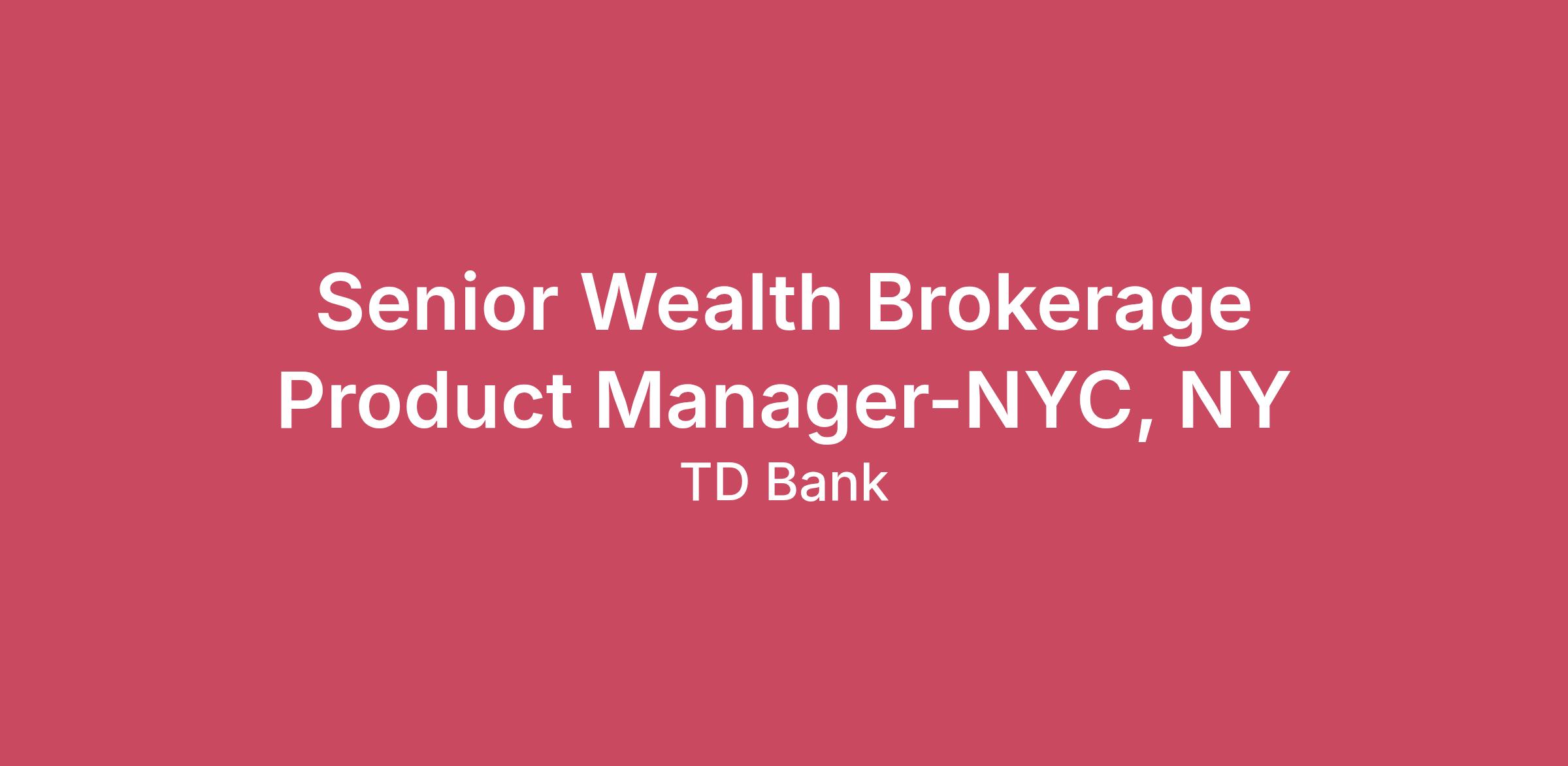 Work Location:New York, New York, United States of AmericaHours:40Pay Details:$119,600 - $178,880 USDTD is committed to providing fair and equitable compensation opportunities to all colleagues. Growth opportunities and skill development are defining features of the colleague experience at TD. Our compensation policies and practices have been designed to allow colleagues to progress through the salary range over time as they progress in their role. The base pay actually offered may vary based upon the candidate's skills and experience, job-related knowledge, geographic location, and other specific business and organizational needs. As a candidate, you are encouraged to ask compensation related questions and have an open dialogue with your recruiter who can provide you more specific details for this role.Line of Business:TD WealthJob Description:Primary areas of focus include support for a full-service brokerage offering to including but not limited to Fixed Income, Structured Products, ETF, Equity, and Options. The Senior Product Manager will oversee and be responsible for the risk and quality management of TD's transactional platform(s) and solutions. The Senior Product Manager, US Wealth oversees the end-to-end management of assigned products, services and programs including features, benefits and characteristics that meet customer needs and are priced to meet the firms profit and loss objectives. The Product Manager manages a particular product or function supporting in the achievement of a business strategy. This role acts as a source for innovation led through customer insights and creating a better customer experience with a particular product. The role is accountable for business results and product sales, working with distribution teams to ensure revenue and volume targets are met.is expected to support the development and execution for both strategic and tactical initiatives related to the ongoing development and support of the Transactional Investment platform and solutions.•Understanding the transactional brokerage platforms and all transactional brokerage products in competitive landscape to position TD in the most competitive way within TDs risk appetite. Subject matter expertise in full-service brokerage offering with depth in Structured Products, fixed income, equity, and options markets, including trading pricing.•Responsible for day-to-day management of Transactional Investment•Responsible for establishing and updating trading rules and parametersDepth & Scope:Subject Matter Expert with substantial knowledge/expertise in Wealth Management product offerings and platform designResponsible for day-to-day product management and product development with mass or niche product/segment suite and moderate/high level of complexity with range of complex attributesResponsible for platform risk management, creating and updating policies, procedures, and product documentation as needed due to internal changes or regulatory updates and ensuring compliance with all policies and procedures. Supports management with business analysis for all projects or enhancementsLiaises with vendors to coordinate platform change management and solution enhancementCollaborates with cross-functional teams across disciplines such as operations, technology, design, marketing, legal, compliance, risk, and relevant departmentsProvides subject matter expertise for internal and external audits and regulatory examsManages 3rd Party platform vendors and partners to ensure risk and quality management of platforms and offeringHandles daily product management and product development responsibilities to make assigned products and programs robust and easier for the Advisors to utilizeProvides holistic solutions that brings together the firm's product shelf to meet the needs of clientsTranslates data into actionable insights and recommendations that can improve the products features, functionality, usability, pricing, and value propositionPerforms financial analysis and revenue managementGathers, analyzes, and interprets trends with data to answer critical business and product questionsRecommends and drives action to improve revenue and/or expense managementChampions the development of the annual business plan and monthly/quarterly forecast processSupports and resolves sales team day to day questions and issuesSupports training efforts on new system/solution rolloutWorks closely with marketing teams to develop and/or refine value propositions and competitive positioning for key solutionsDelivers financial results for the product/product suite via operation of all available levers: pricing, margin, volume etc., creates and delivers business cases to achieve strategic business results (acquisition, retention, customer experience, engagement and market share)Education & Experience:Undergraduate degree or product management certificate, and/or7+ years relevant experiencePrevious Product experience typically requiredAdvanced knowledge of and ability to conduct product research, product analysis and development, forecasting, pricing, competitive intelligenceKnowledge of current and emerging competitor and market trendsAbility to lead, plan, implement and evaluate program/project activities to ensure completion of product initiativesAbility to forecast and contribute to strategic direction of the product management function and provide advice to senior leadershipAbility to communicate effectively in both oral and written formAbility to work collaboratively and build relationships across teams and functionsAbility to work successfully as a member of a team and independentlyAbility to exercise sound judgement in making decisionsAbility to analyze, organize and prioritize work while meeting multiple deadlinesSkill in preparing and managing budgets and P&LKnowledge of and/or skill in using analytical software tools, data analysis methods and reporting techniquesSkill in using computer applications including MS OfficeAbilit